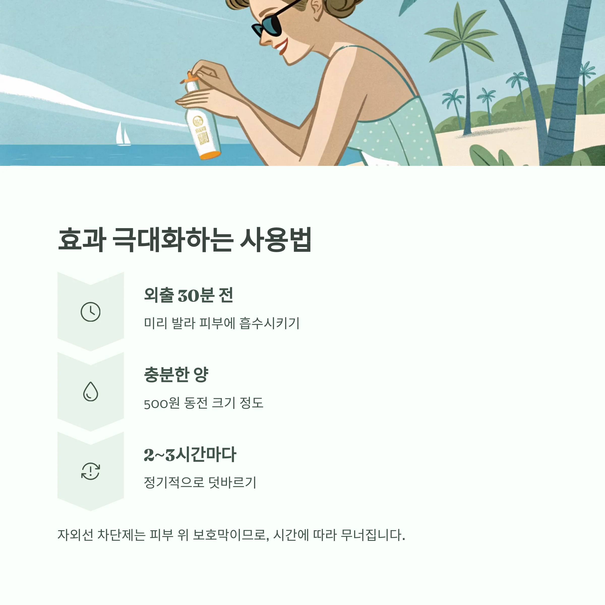 "자외선 차단제는 피부 위 보호막"이므로, 시간에 따라 무너집니다.