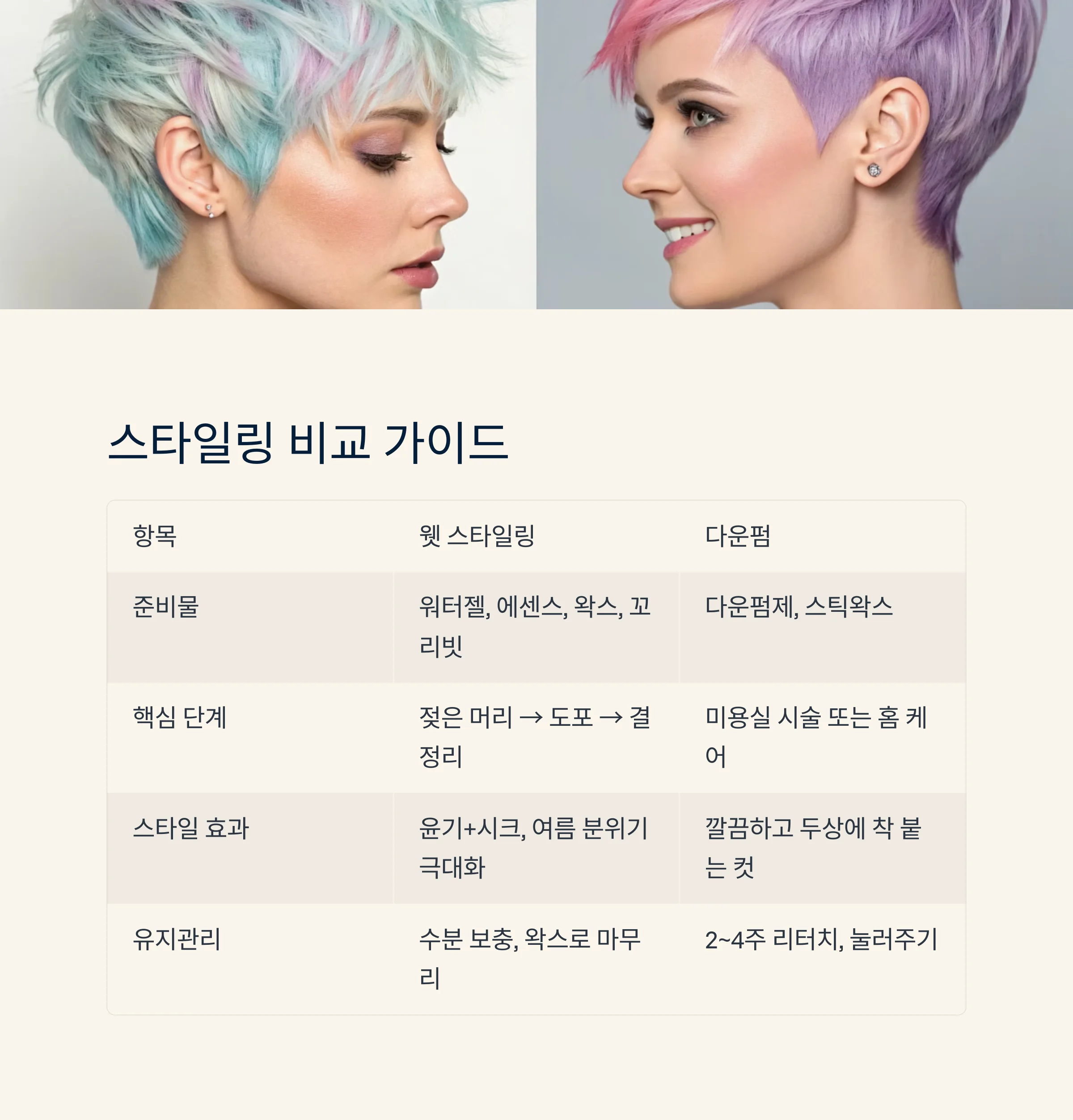 | 항목 | 웻 스타일링 | 다운펌 |