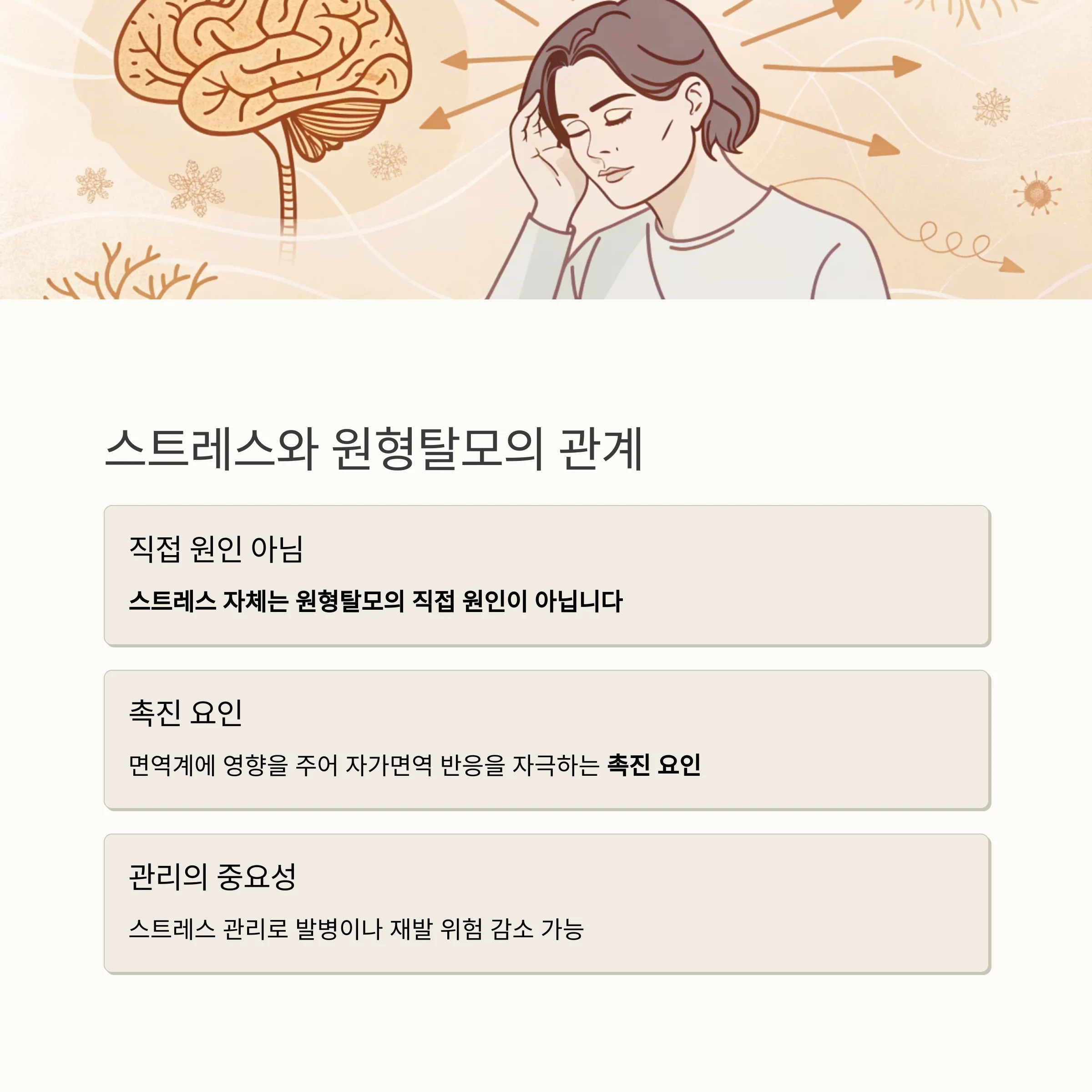스트레스 자체는 원형탈모의 직접 원인이 아닙니다