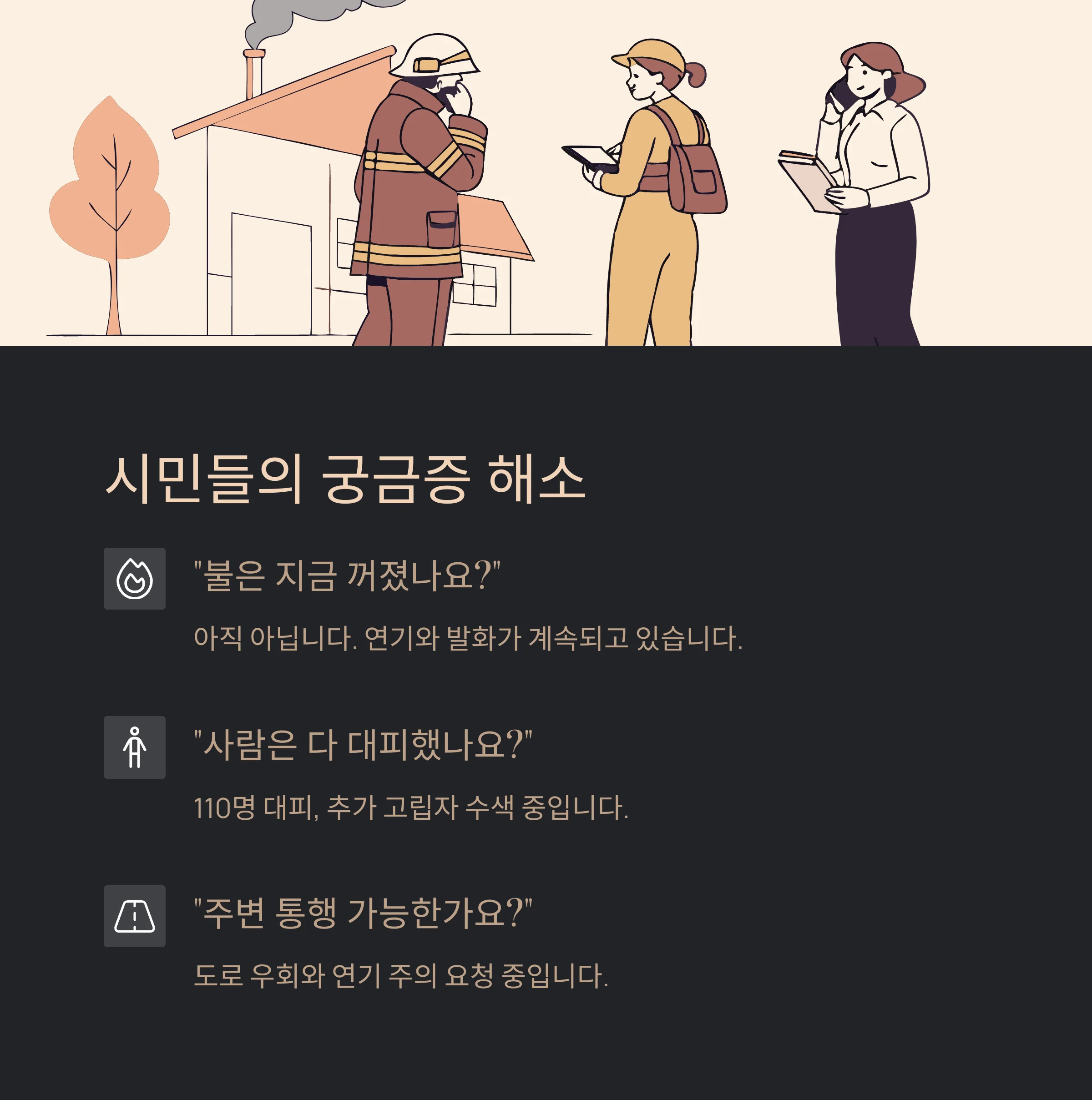 한 시민의 증언처럼, 이번 화재는 규모뿐 아니라 시각적 충격도 컸습니다.