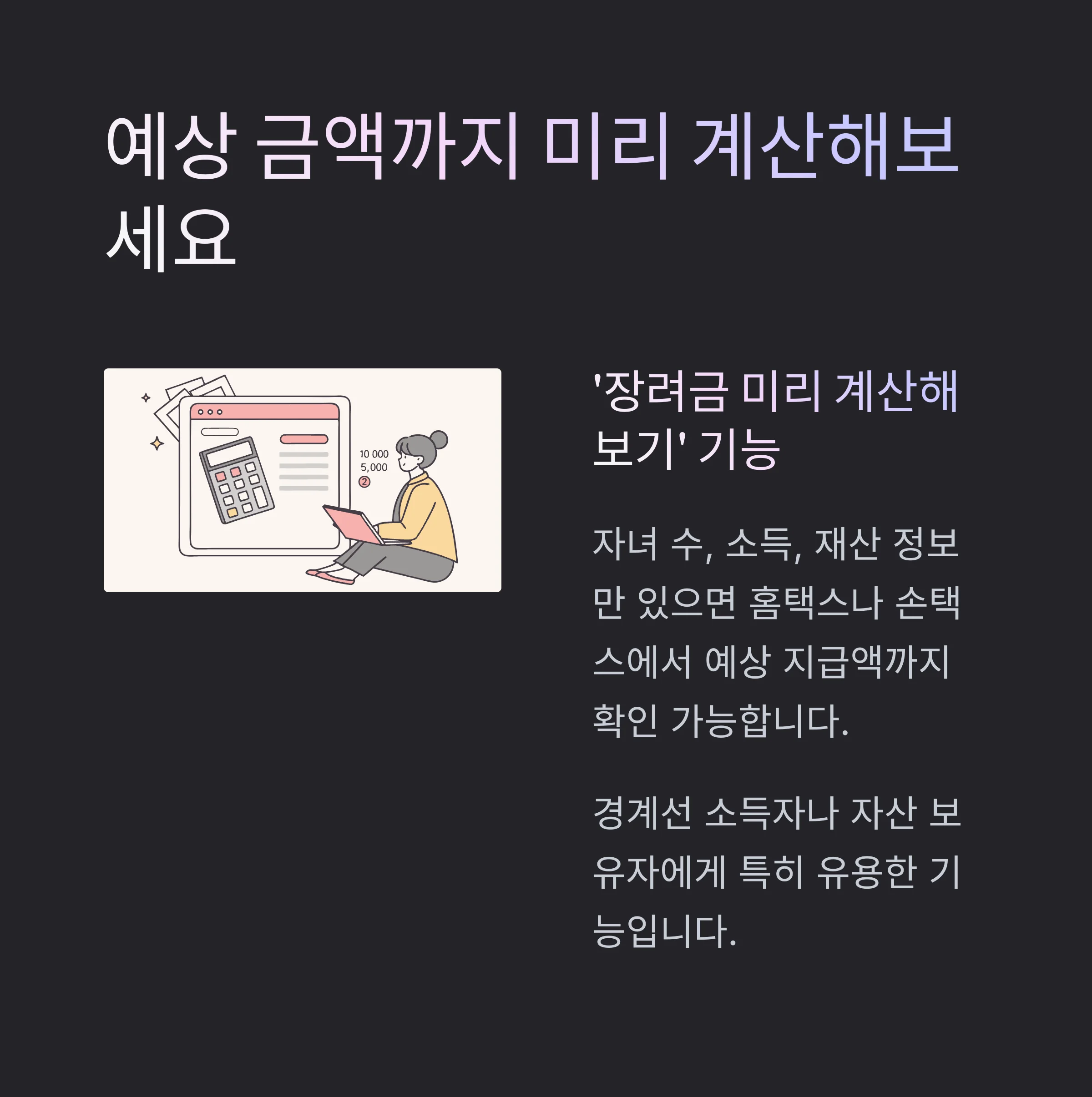 "안내문이 없어도 ‘장려금 미리 계산’ 기능으로 자격 사전 확인이 가능합니다."