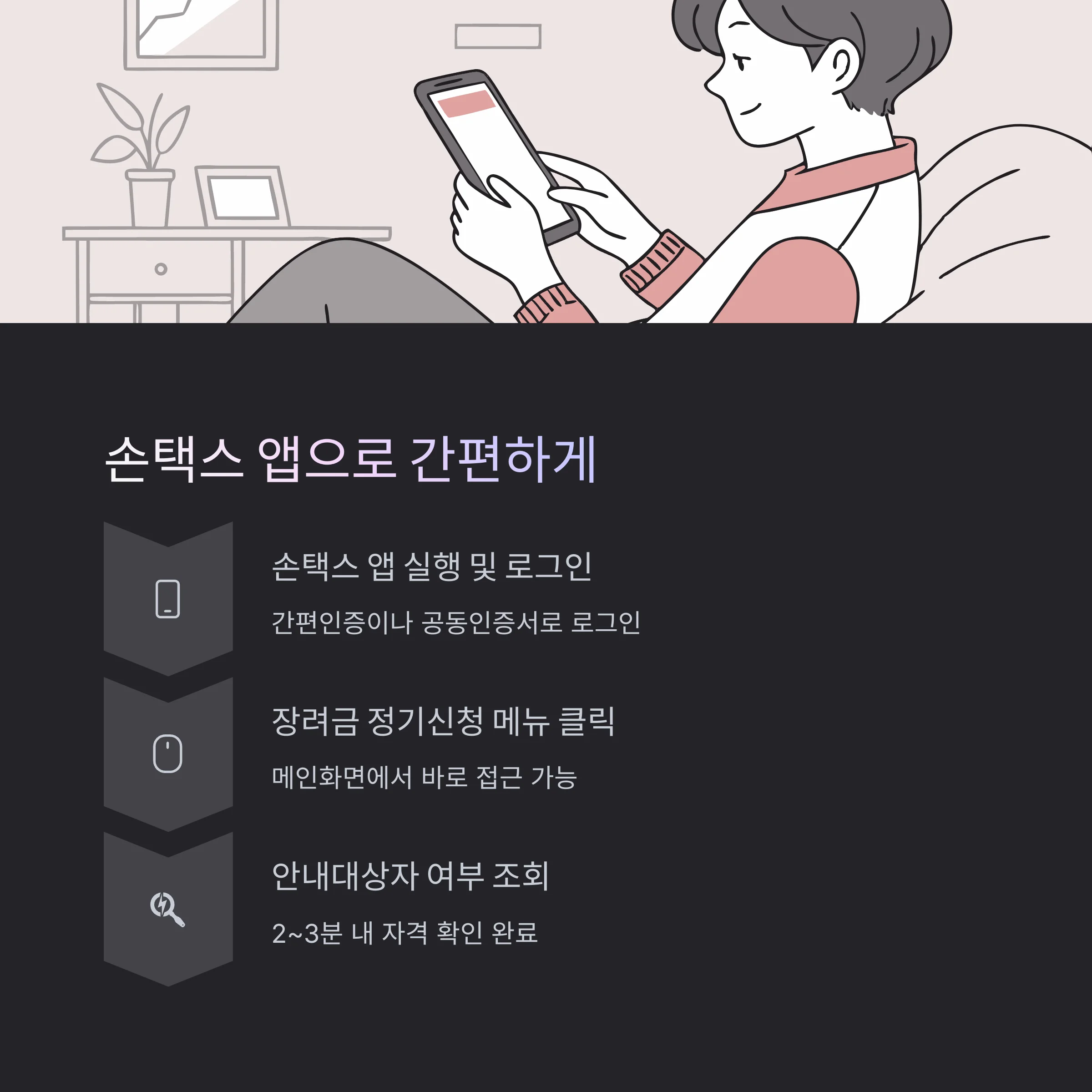 - 주민등록번호 또는 간편인증 → 대상 여부 즉시 확인