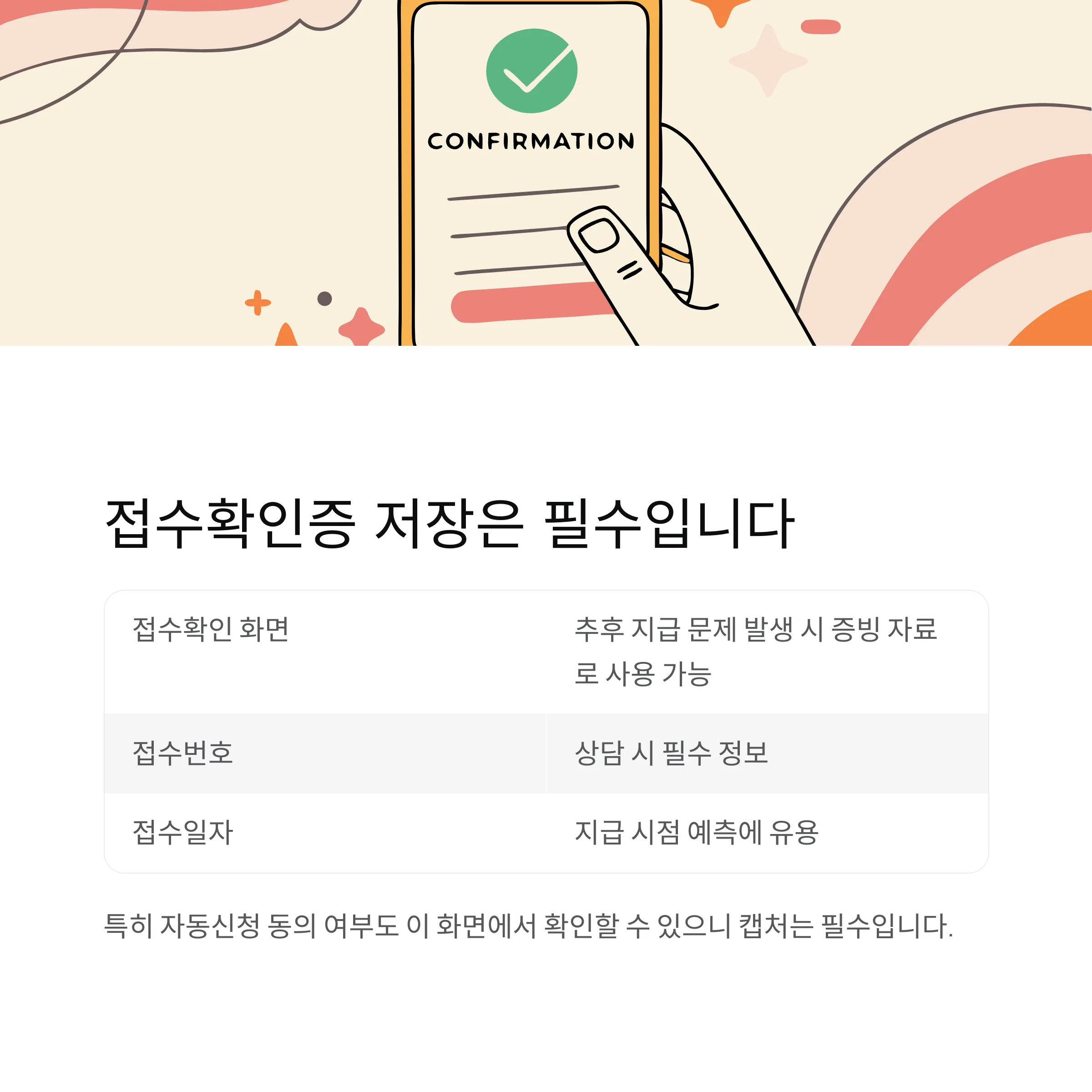 "특히 자동신청 동의 여부도 이 화면에서 확인할 수 있으니 캡처는 필수입니다."
