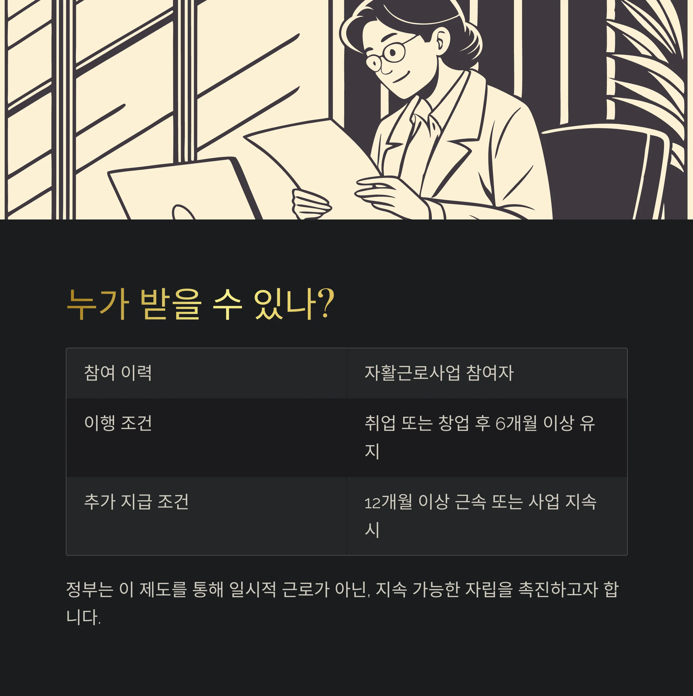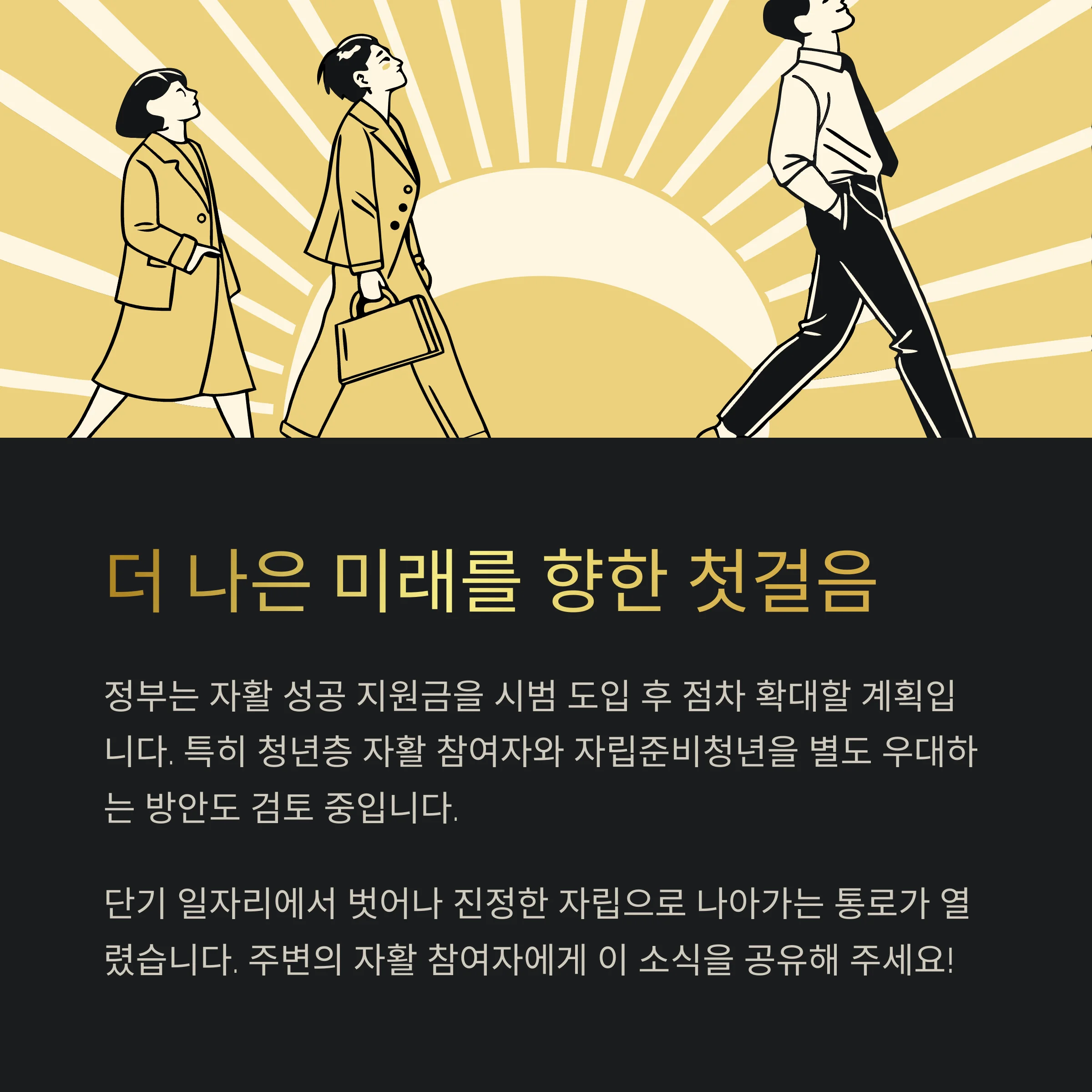 정부는 이 제도를 통해 일시적 근로가 아닌, 지속 가능한 자립을 촉진하고자 합니다.