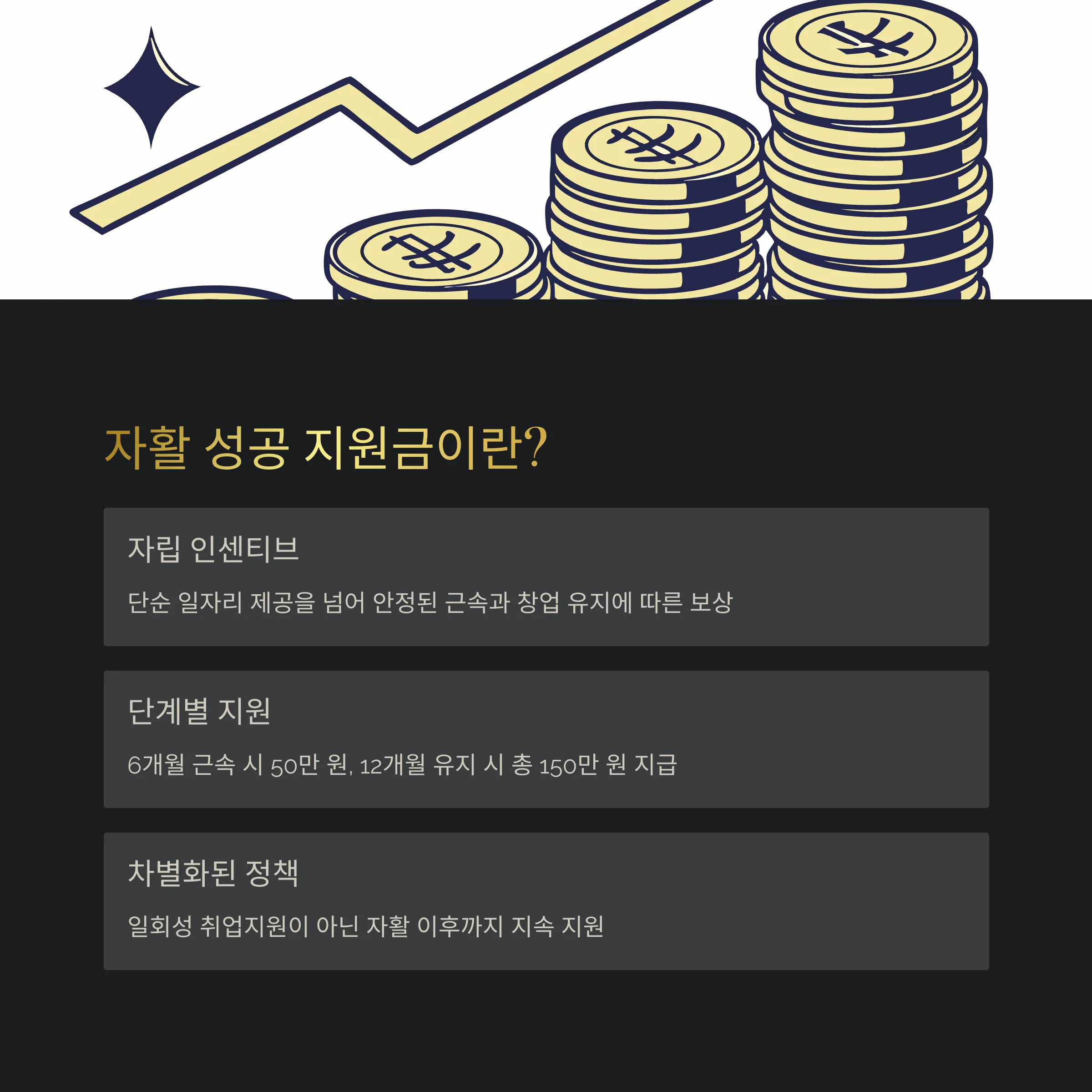 자활 이후도 지원한다는 점에서, 단순한 일회성 취업지원 정책과 차별화됩니다.