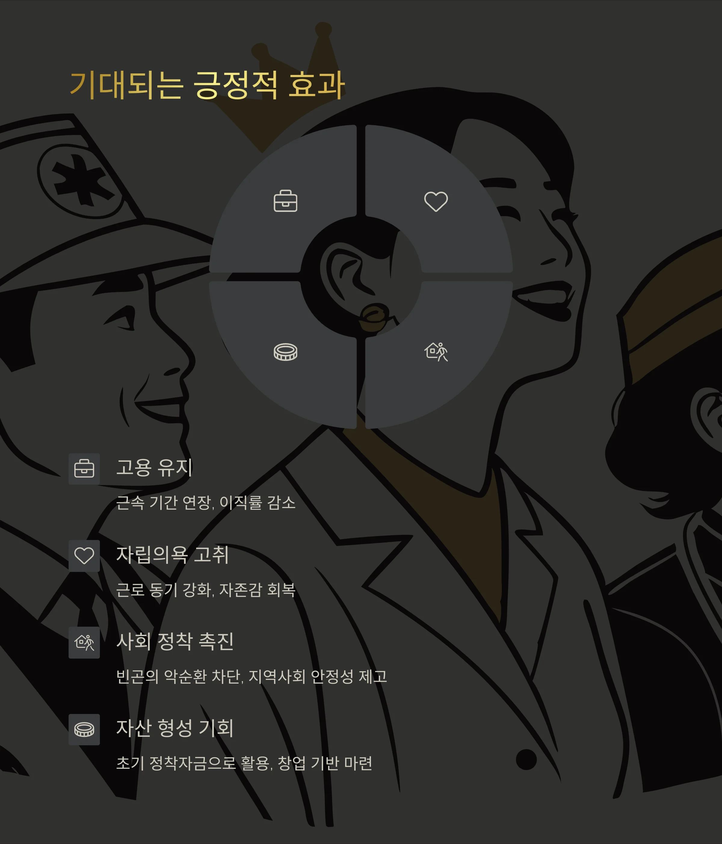 | 자립의욕 고취 | 근로 동기 강화, 자존감 회복 |