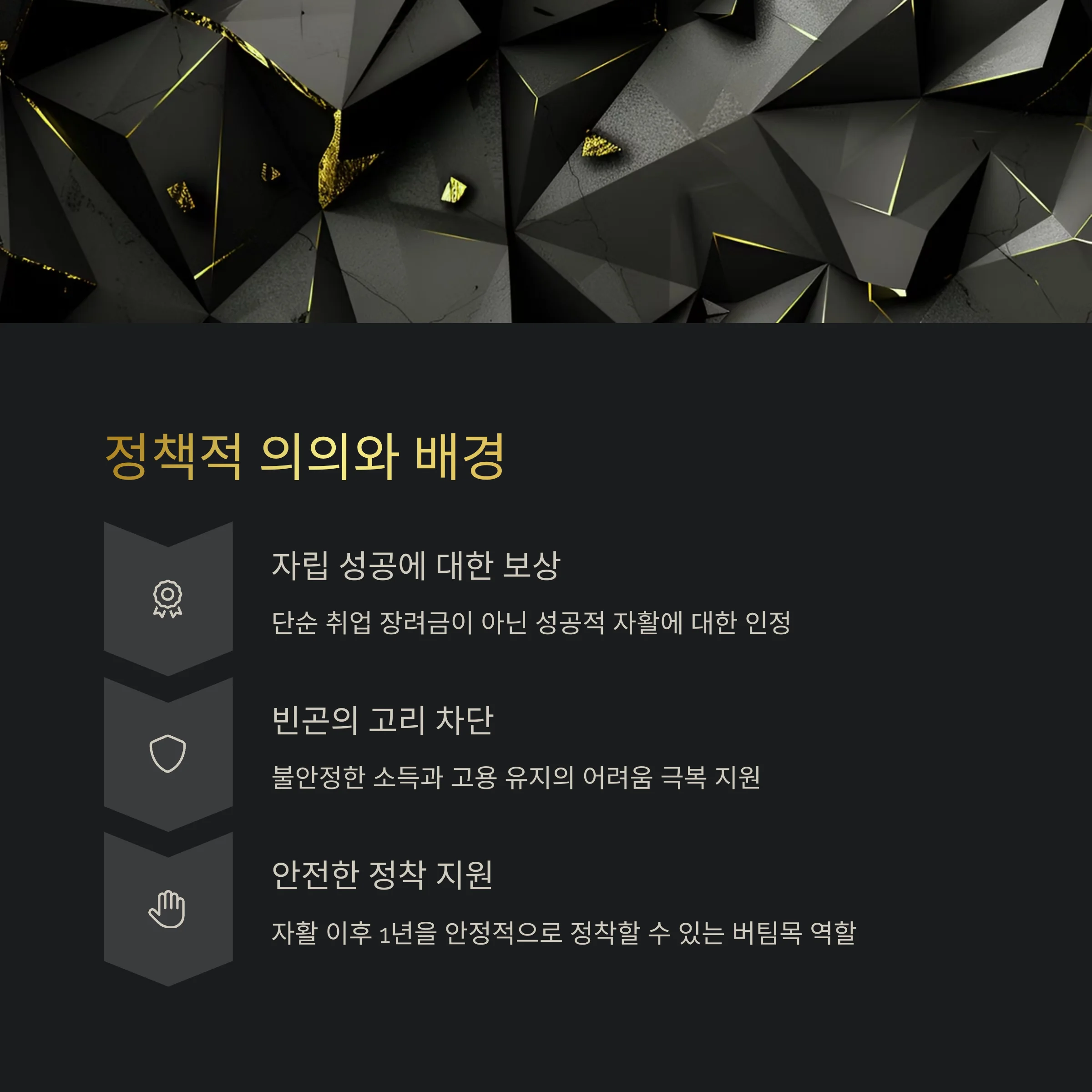 이 제도는 단순한 취업 장려금이 아니라, 자립 성공에 대한 보상입니다.