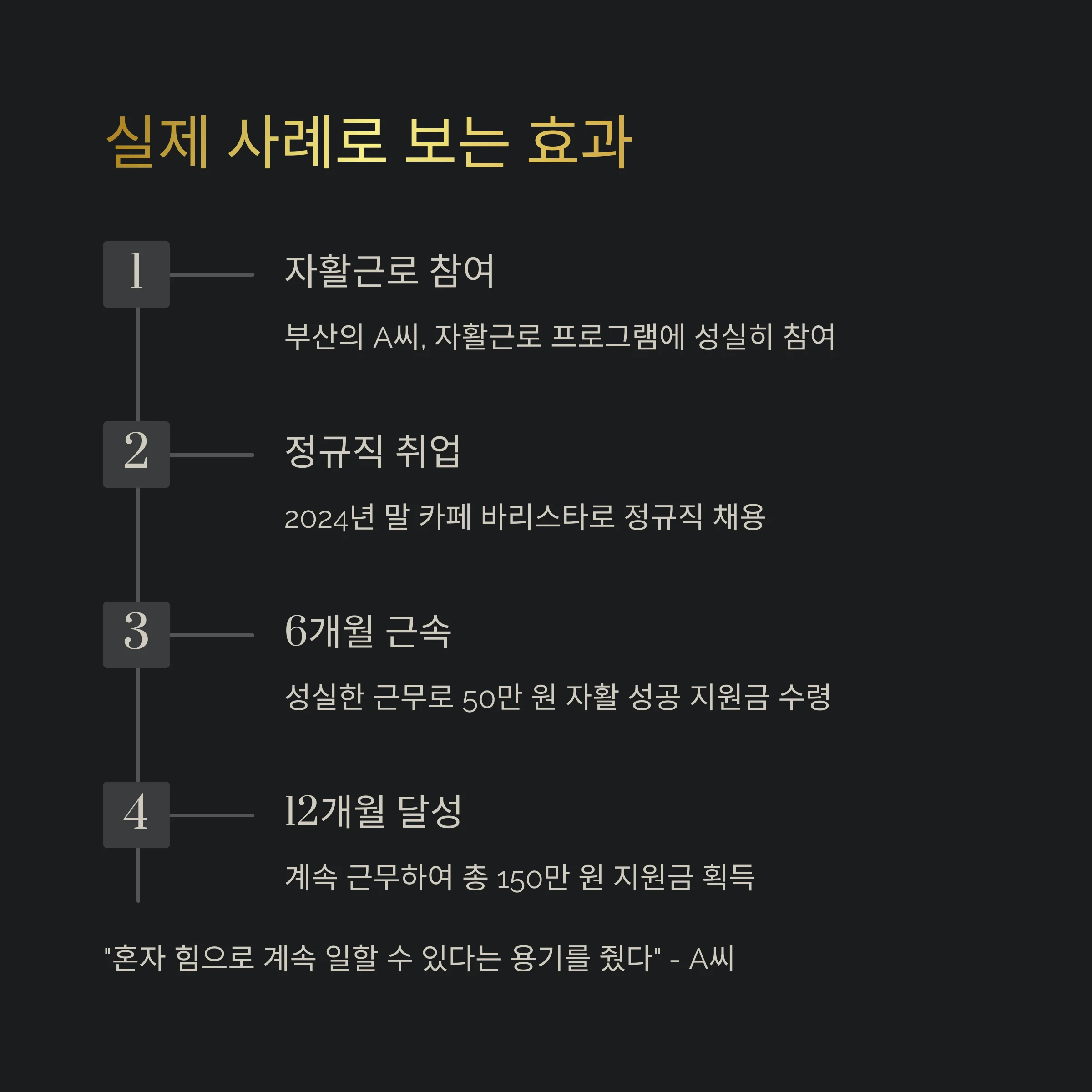 6개월을 성실히 근무한 후, 2025년 자활 성공 지원금 50만 원을 수령,