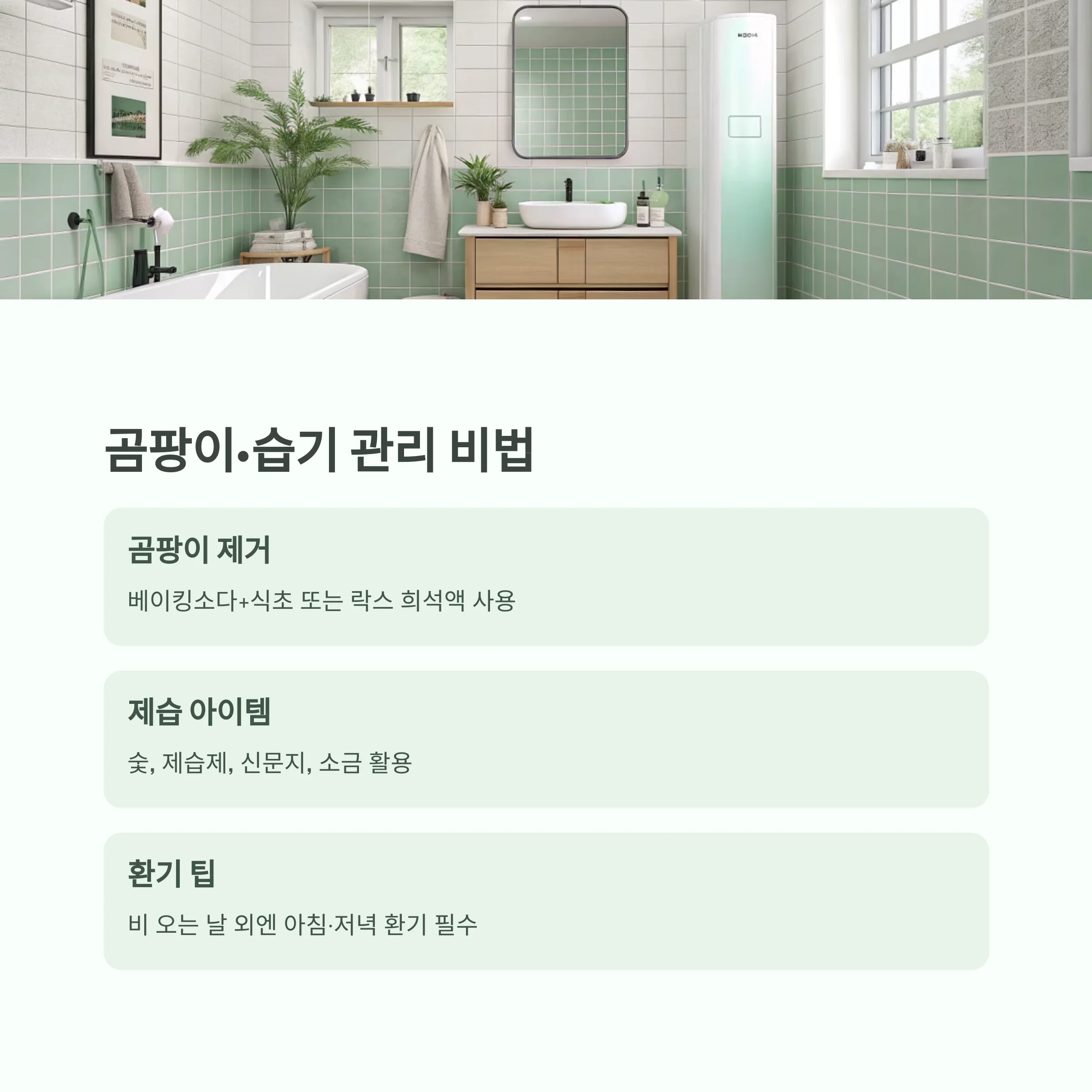 | 곰팡이·습기 관리 | 곰팡이 청소, 제습제 활용, 환기 |