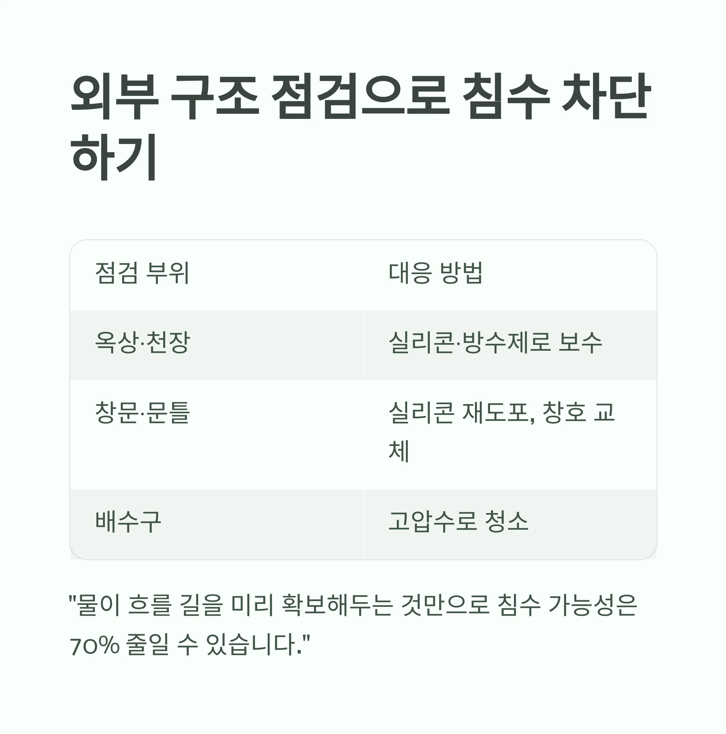 외부 구조 점검으로 침수·누수 미리 차단하기