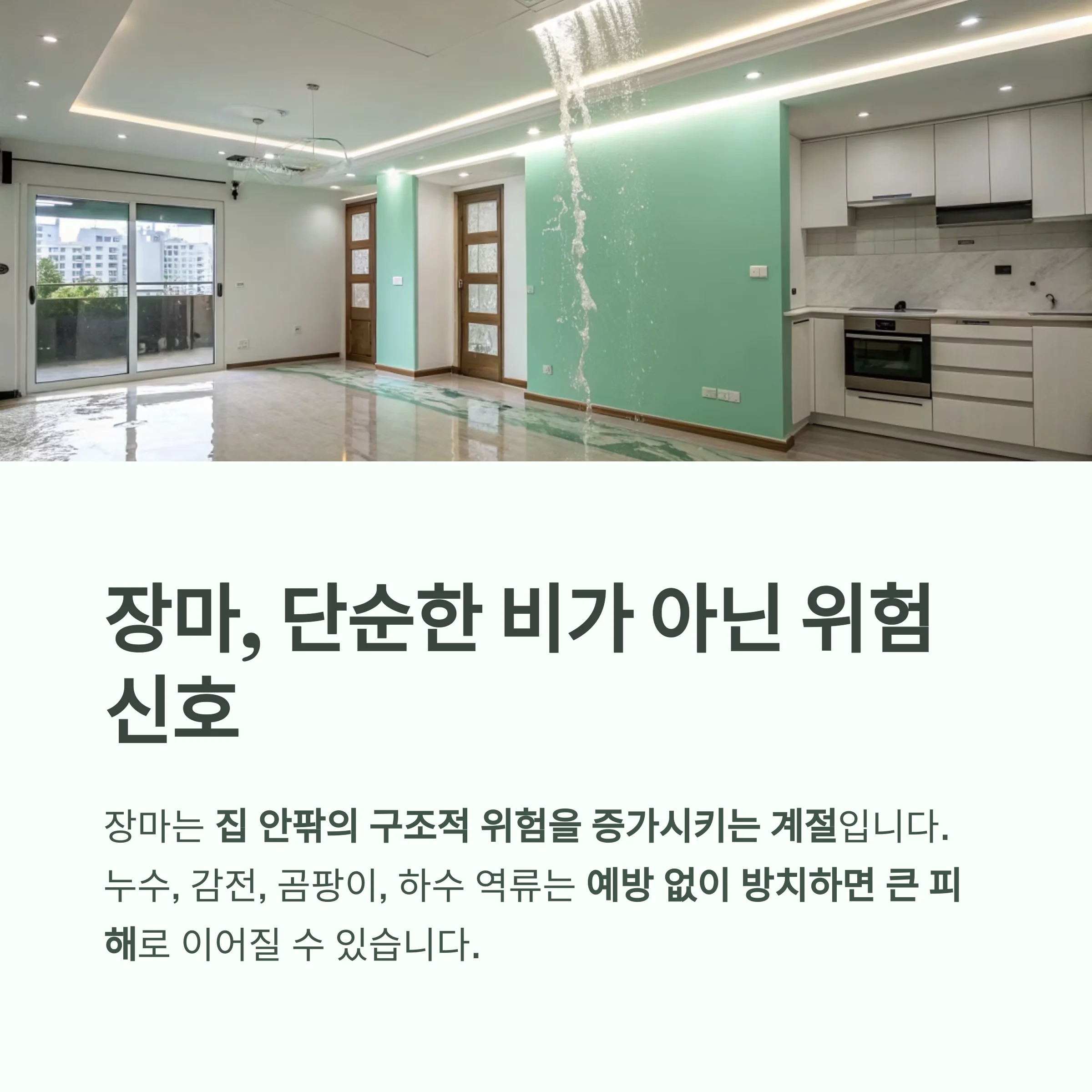 장마는 단순히 비가 오는 시기를 넘어 집 안팎의 구조적 위험을 증가시키는 계절입니다.