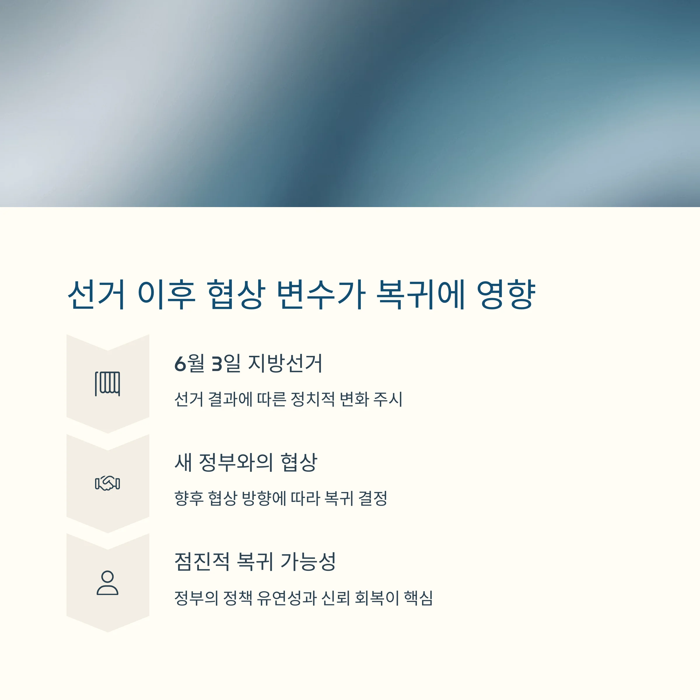 새 정부와의 향후 협상 방향에 따라 복귀를 결정하겠다는 분위기도 나타나고 있습니다.