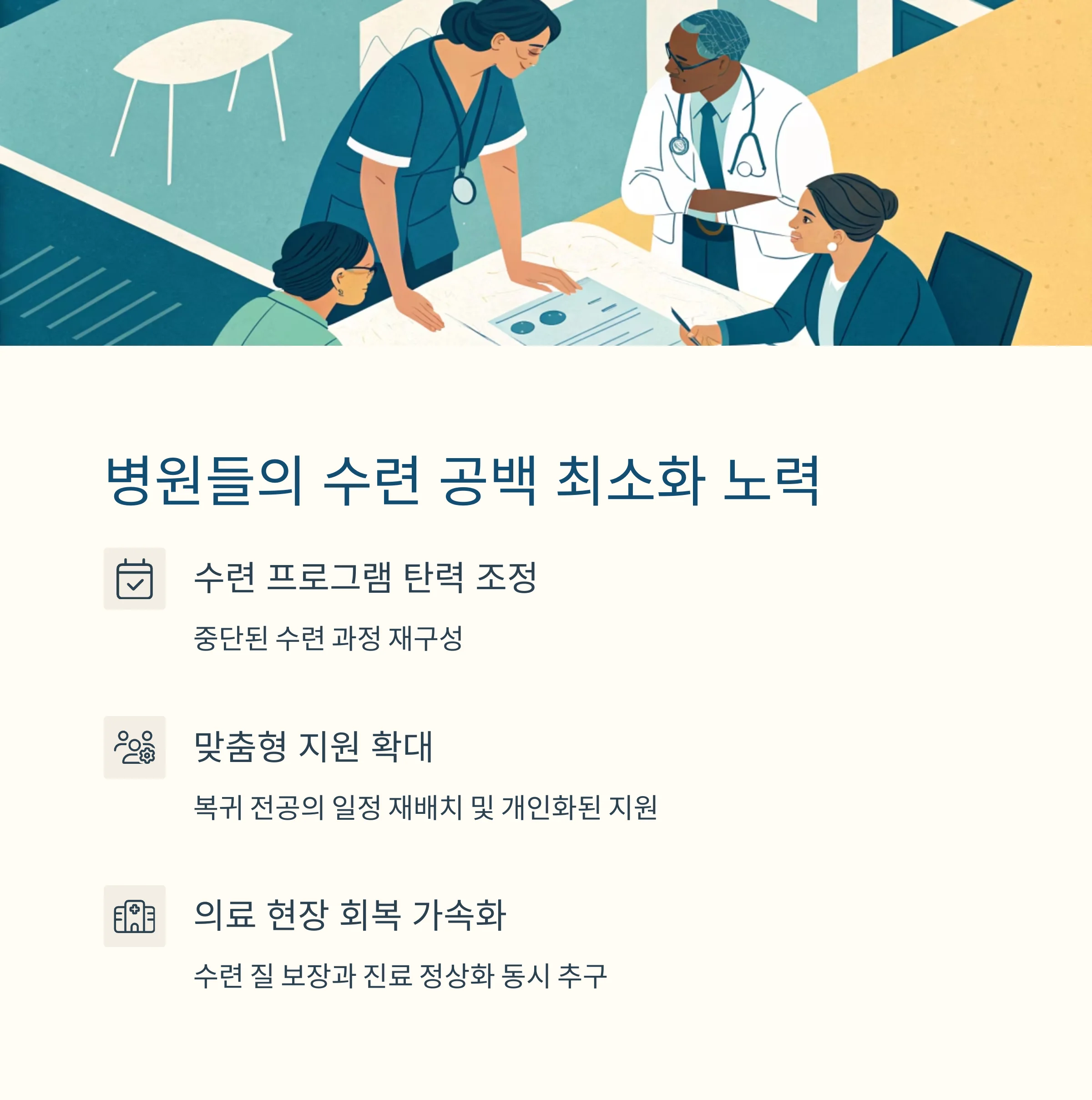 복귀자 중심의 수련 체계 조정, 제도적 지원 확대