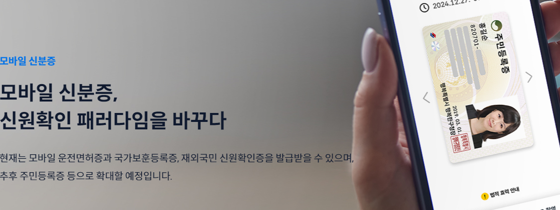 - 실물 신분증이 정상 상태여야 함: 분실 또는 재발급 신청 중인 경우 모바일 신분증을 사용할 수 없습니다.