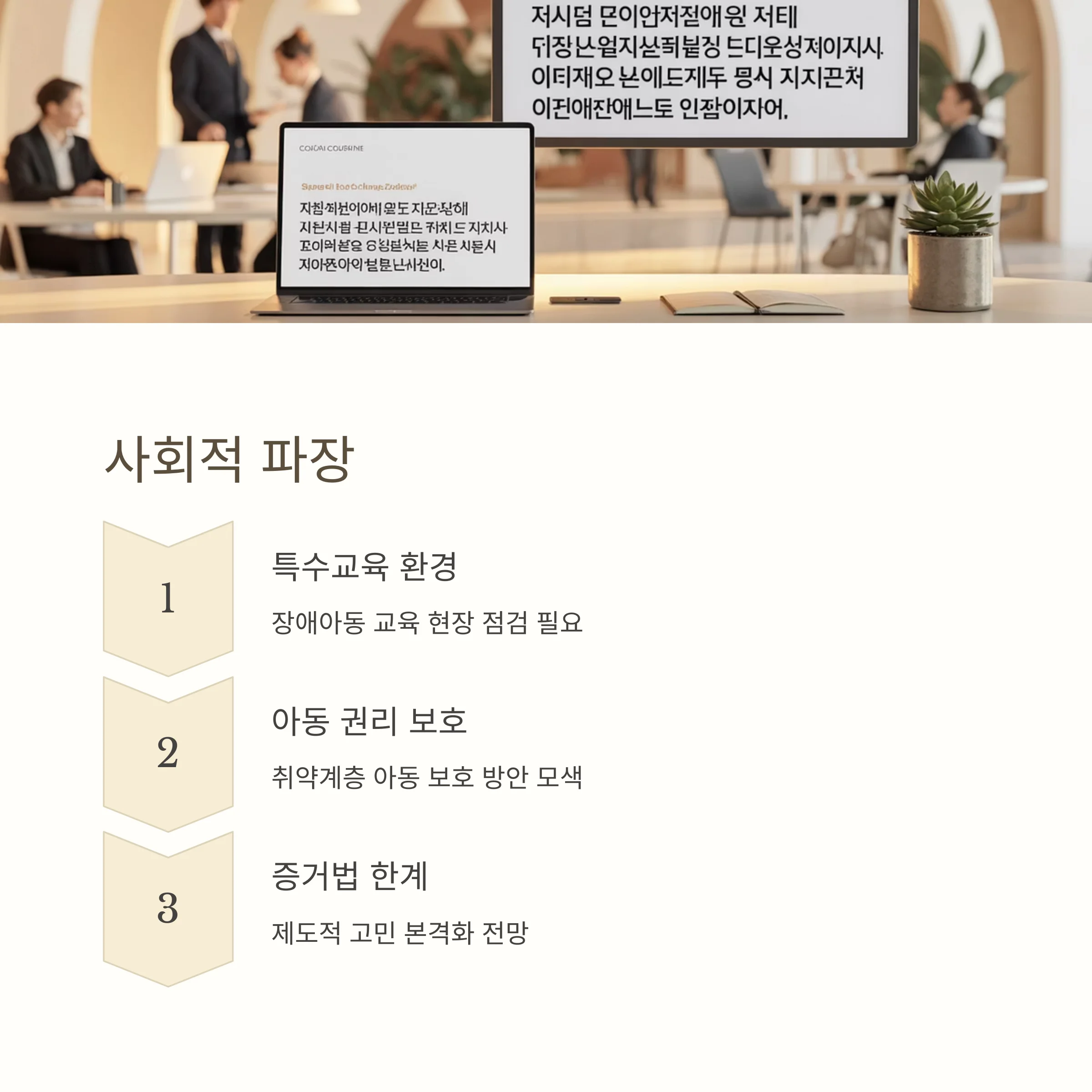 특수교육 환경과 아동 권리 보호, 증거법 적용의 한계를 명확히 드러낸 사건으로 평가받고 있습니다.