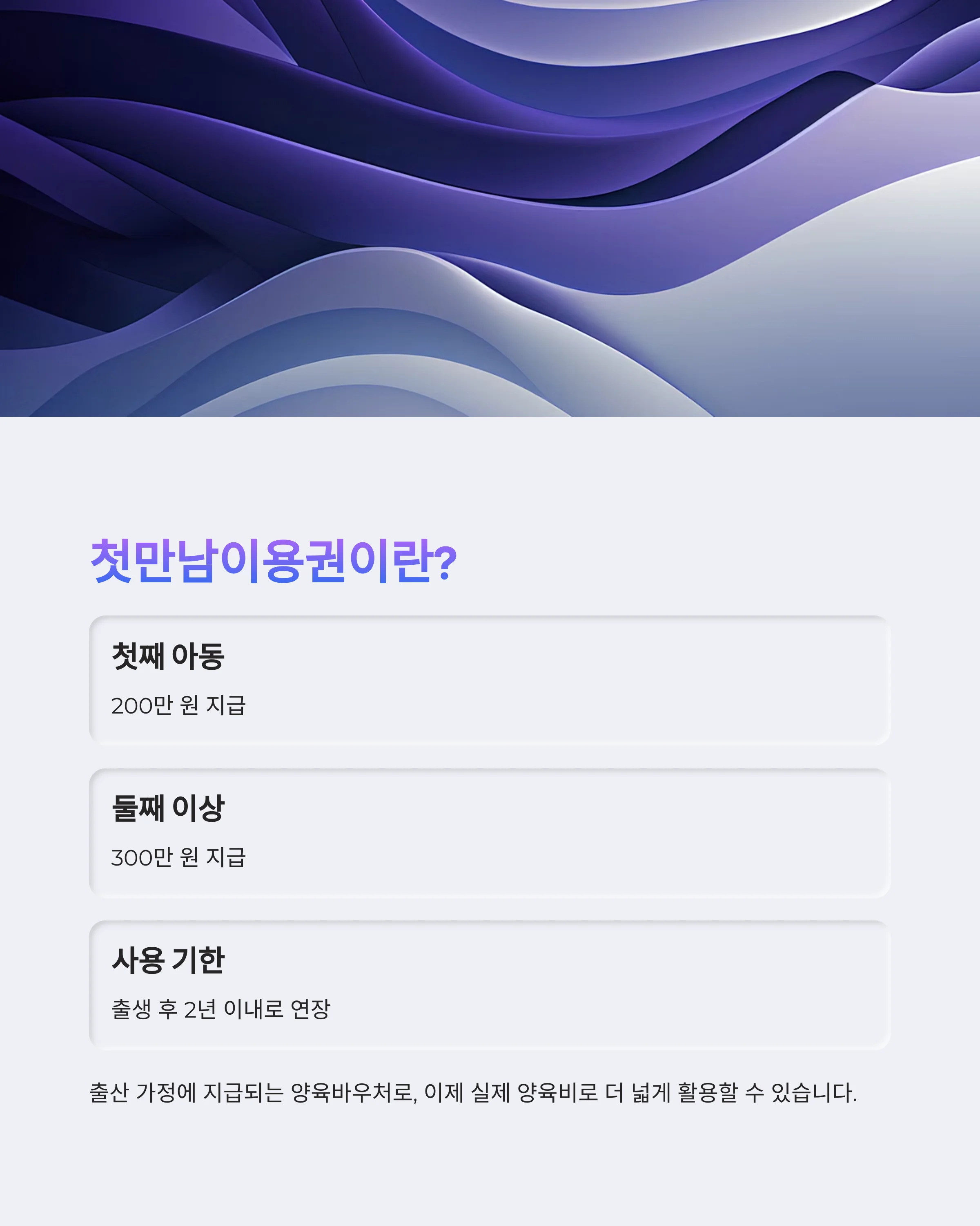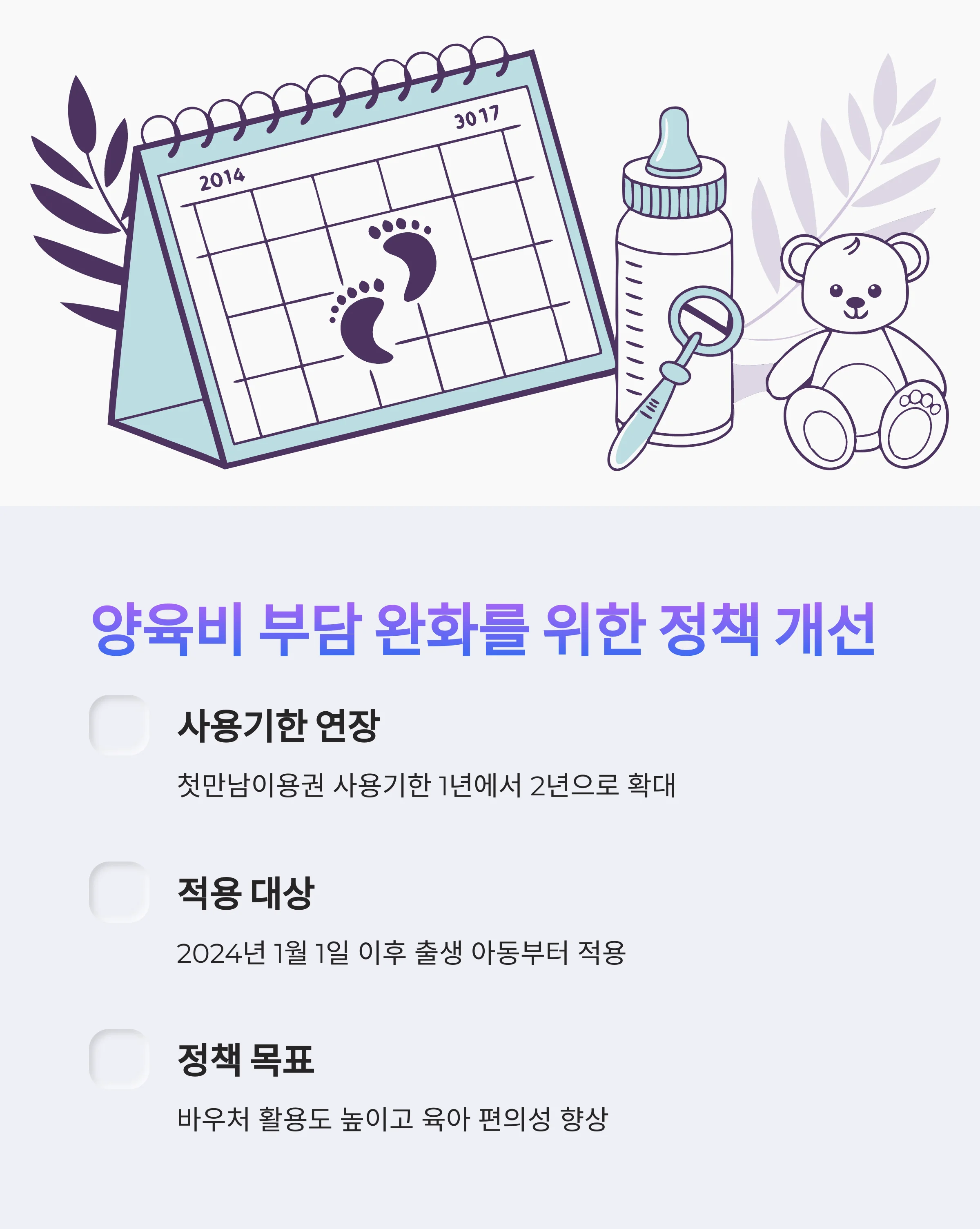 | 사용 기한 | 출생 후 1년 이내 | 출생 후 2년 이내로 연장 |