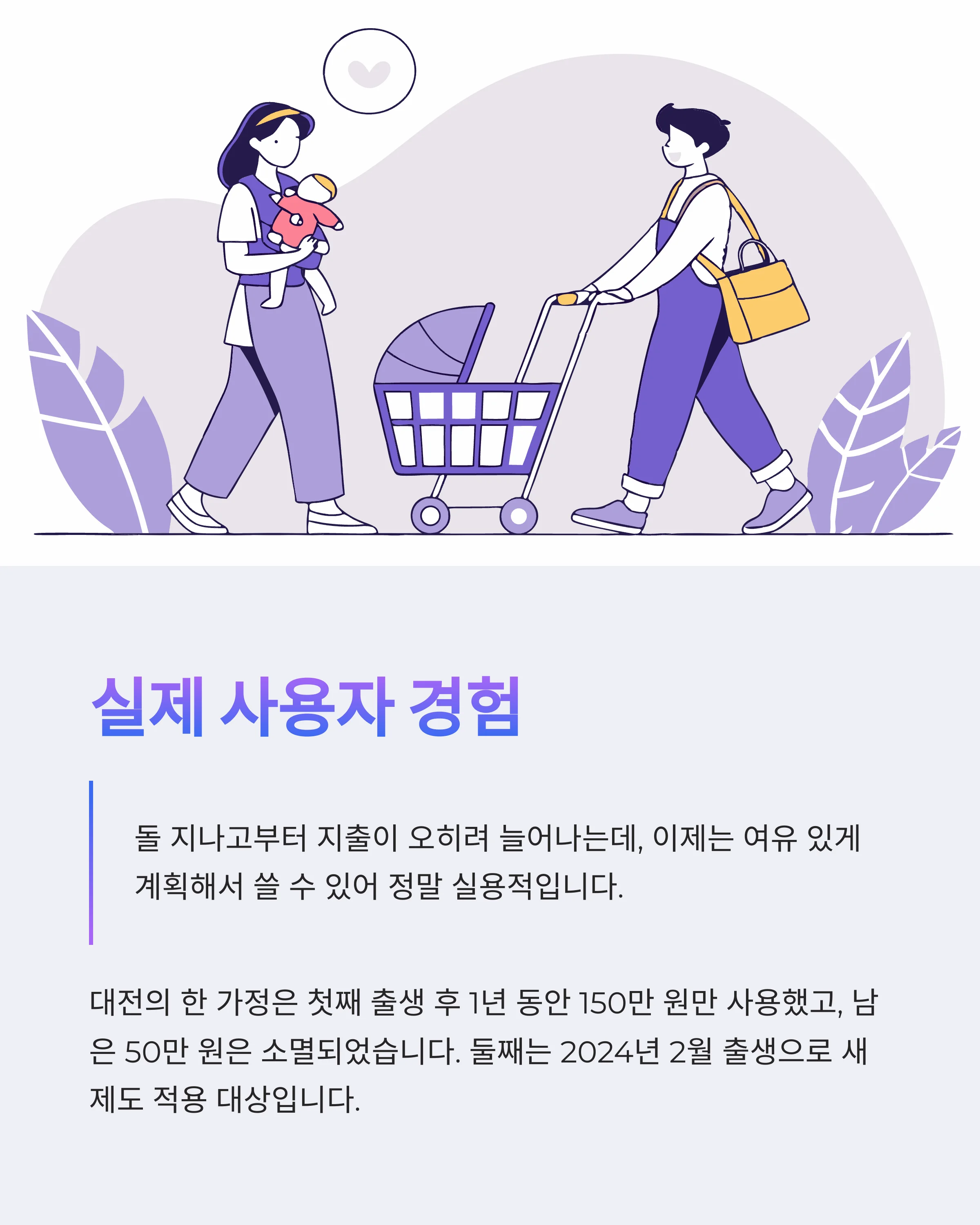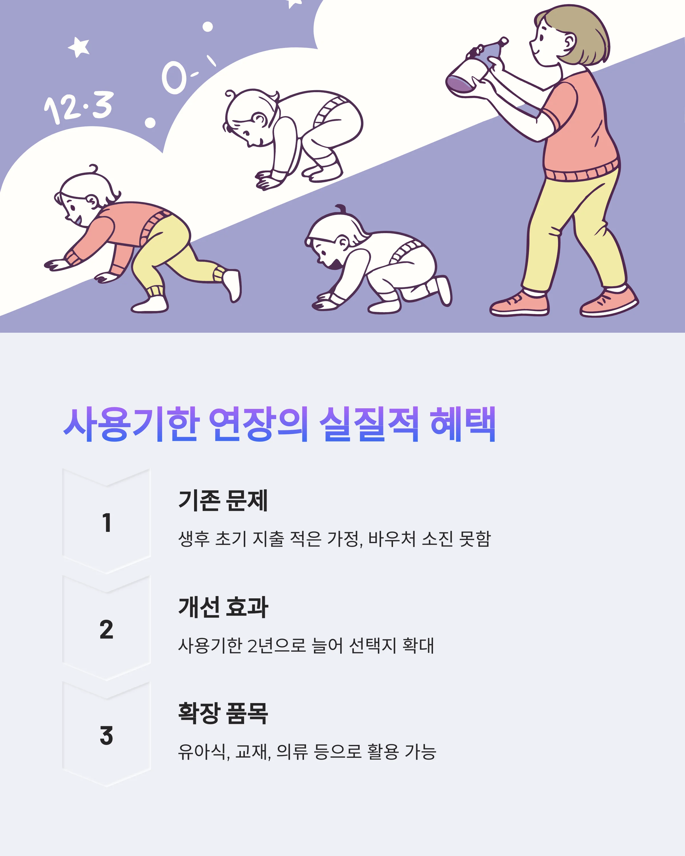 | 지출 선택지 다양화 | 생후 12~24개월 유아품 소비에도 적극 활용 가능 |
