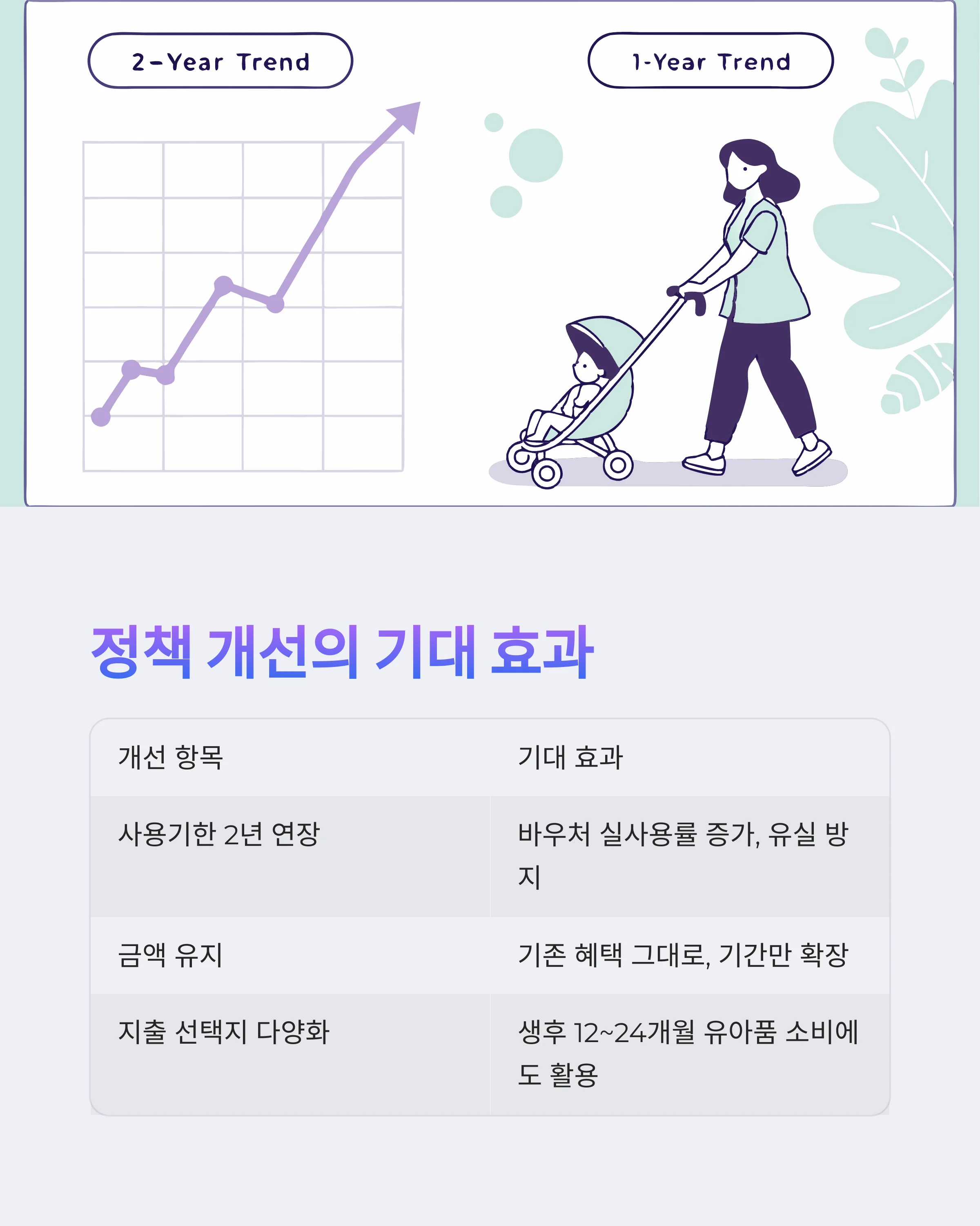 바우처의 실질적 활용도를 높이고 육아 편의성을 향상시키는 정책 개선으로 평가받고 있습니다.