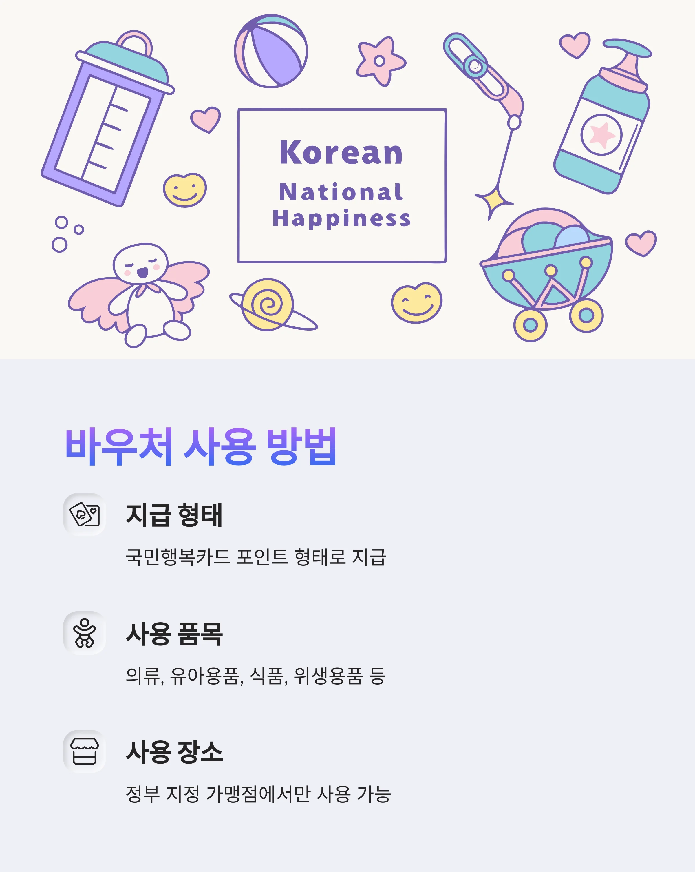 "아이를 키우는 데 필요한 실질적인 품목에 집중 사용이 가능하도록 설계된 바우처"라는 점에서,