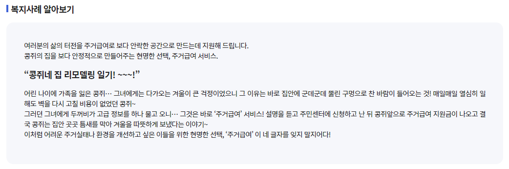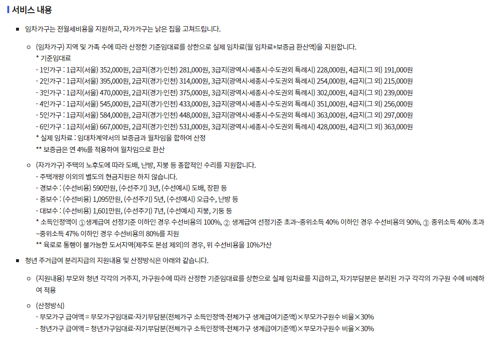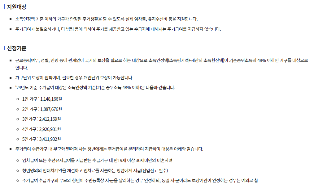 | 소속 | 주거급여 수급가구에 속해 있을 것 (부모 포함) |