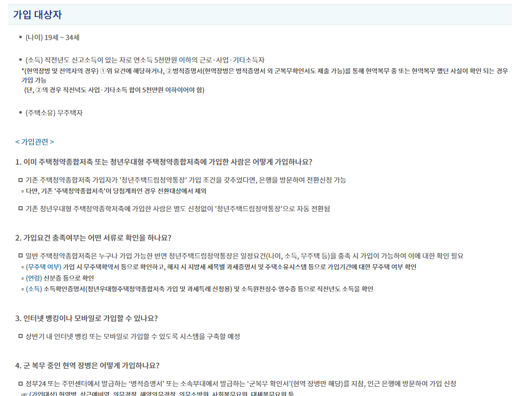 | 연령 | 신청일 기준 만 19세 이상 ~ 34세 이하 |