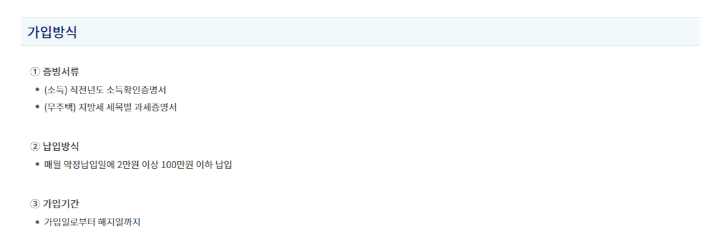 | 소득 | 연 소득 4천만 원 이하 (무소득자 가능) |