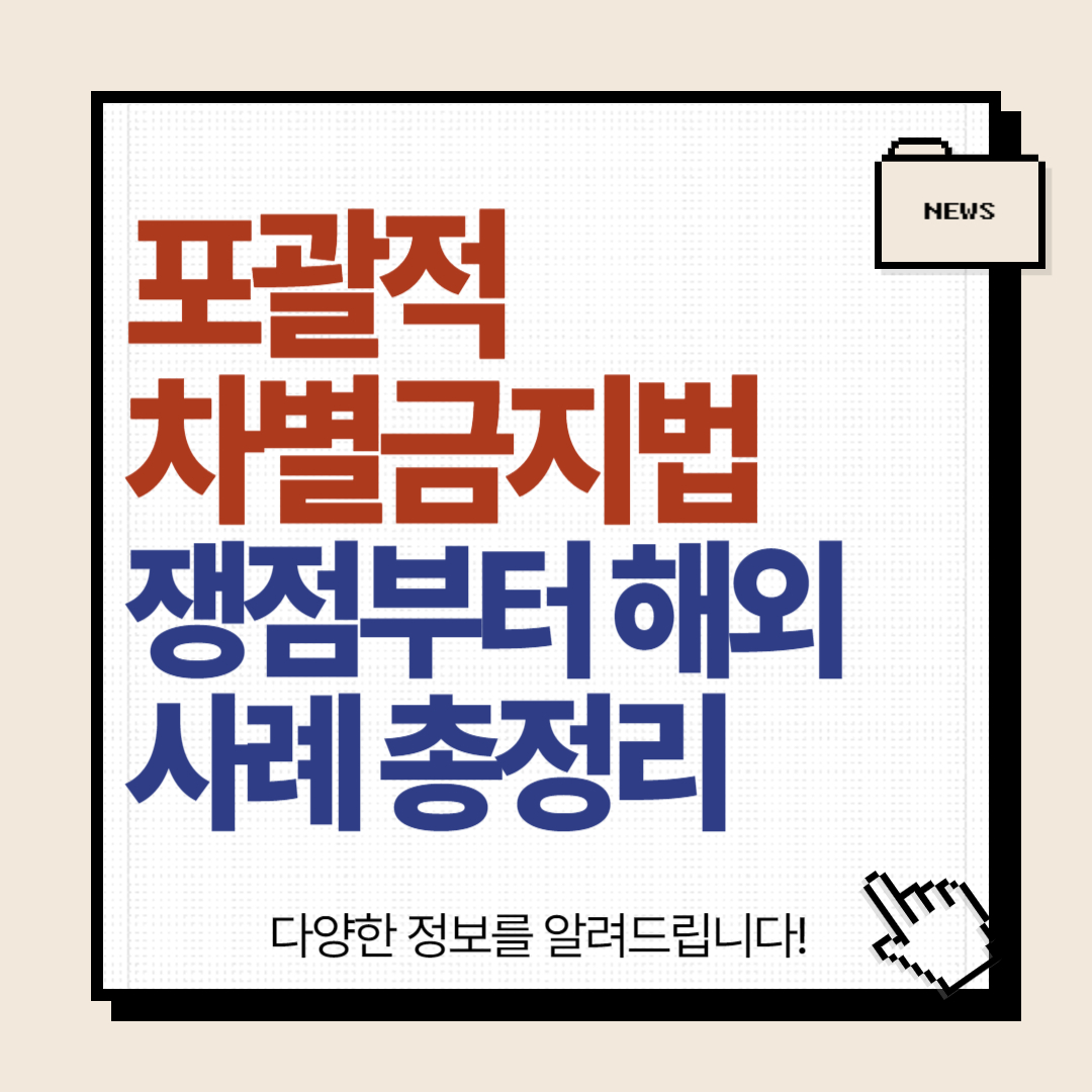 오늘은 요즘 뉴스나 인터넷에서 자주 보이는 ‘포괄적 차별금지법’에 대해 깊이 있게 이야기해보려고 합니다.