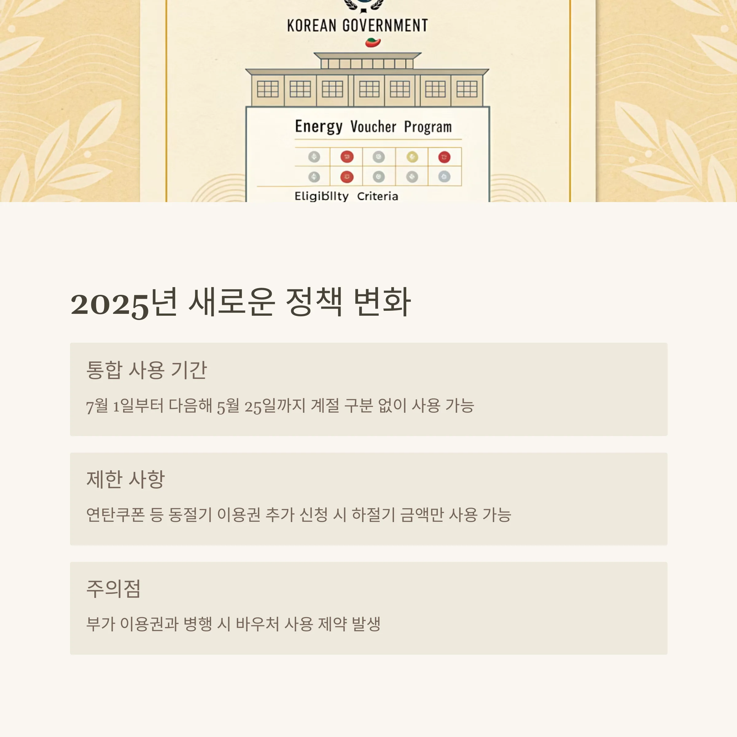 에너지바우처는 계절별로 지원 금액과 사용 방식이 달라집니다.
