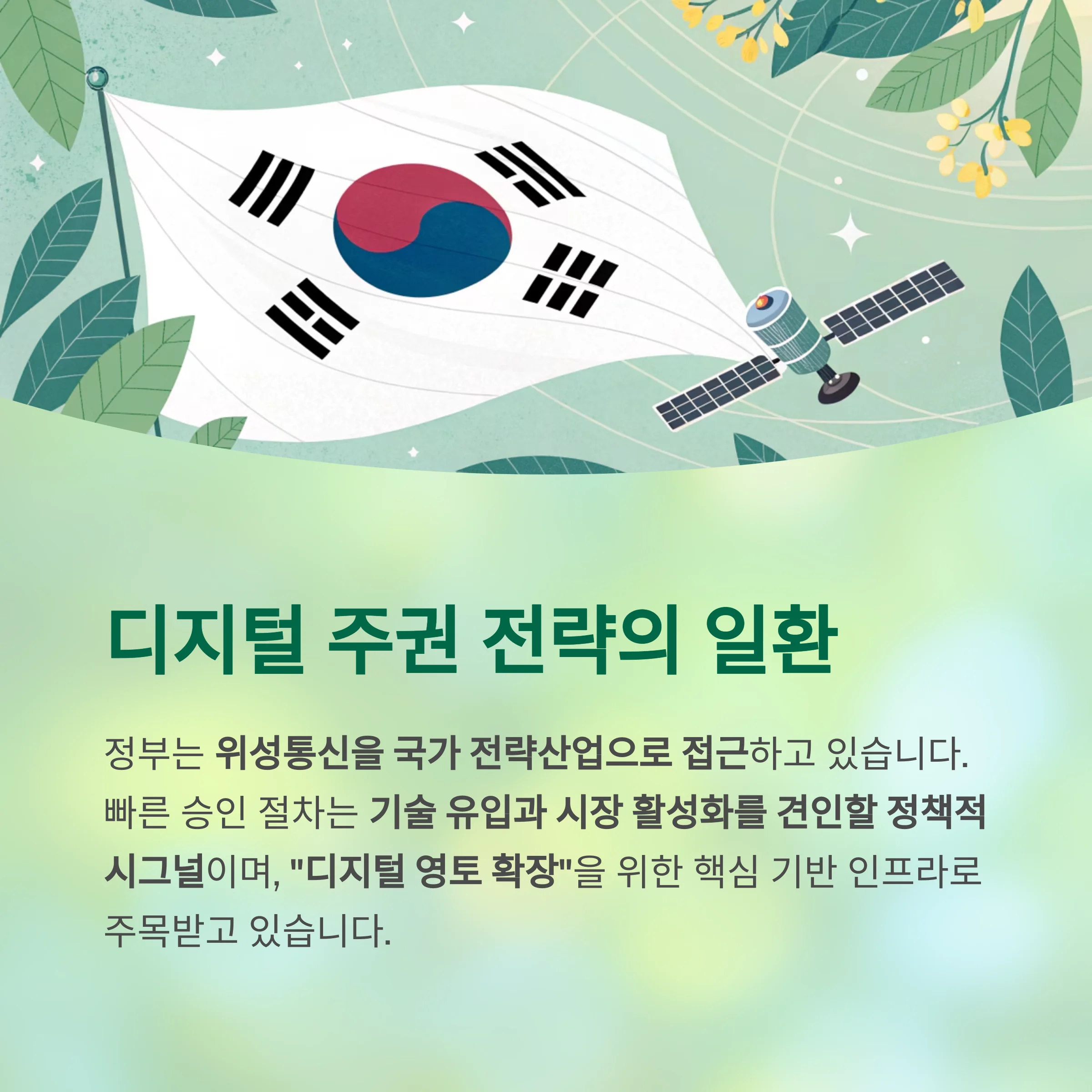 위성통신을 국가 전략산업으로 접근하는 기조를 보여주고 있습니다.