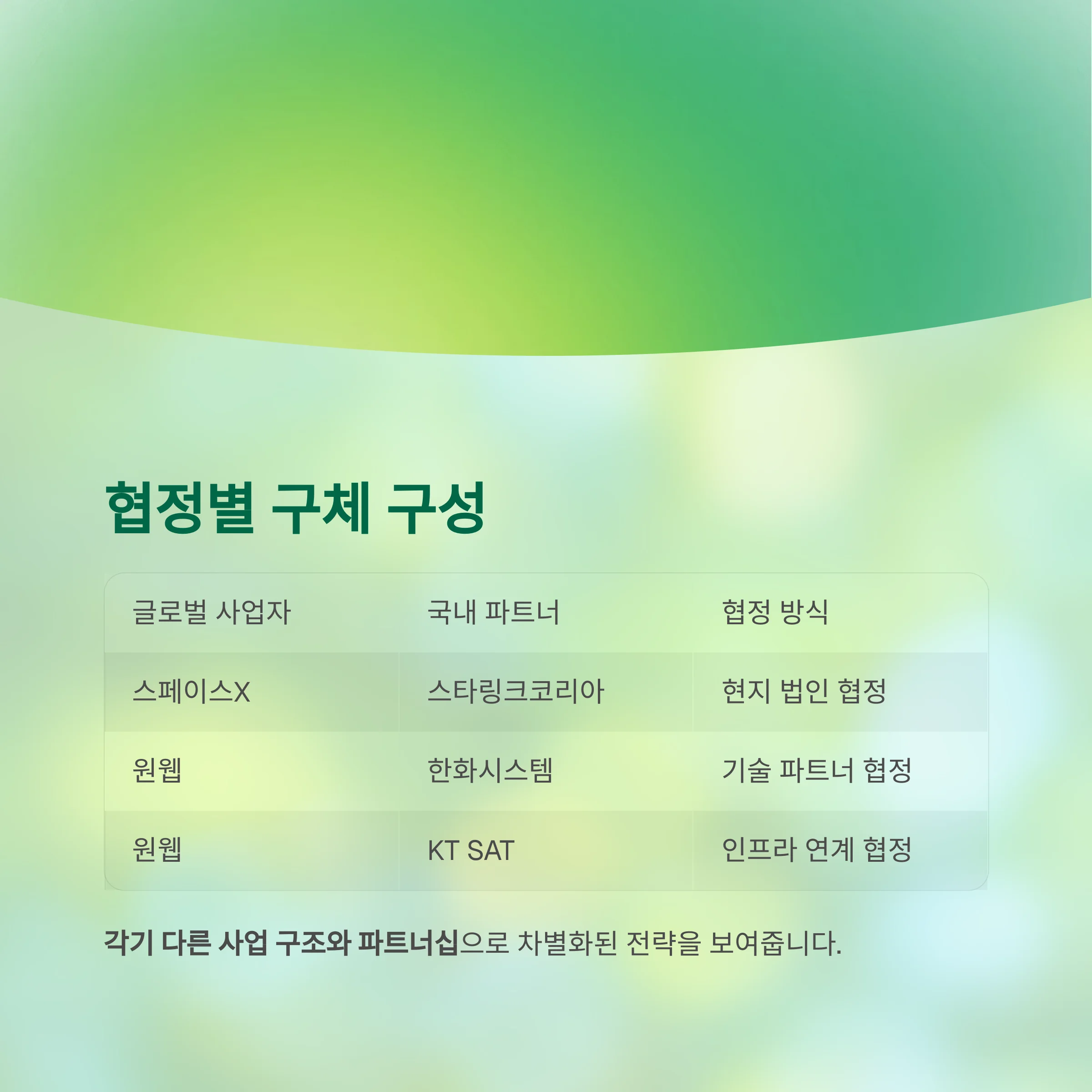 | 글로벌 사업자 | 국내 파트너 | 협정 방식 |