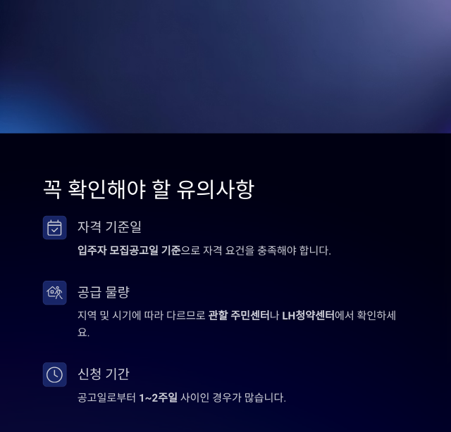 • 입주자 모집공고일 기준으로 자격 요건을 충족해야 합니다.