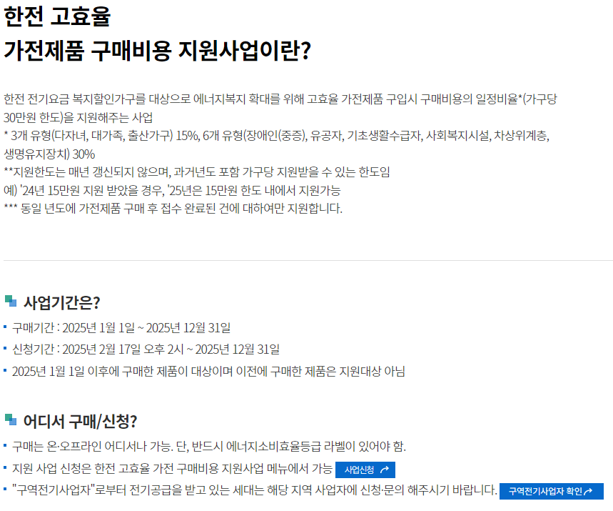 신청 사이트: https://en-ter.co.kr/support/main/main.do (한전 고효율 가전 제품 구매비용 지원)