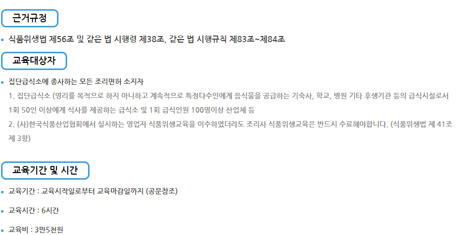 식약처 위생교육 누리집에서 지역별로 조회 가능합니다.