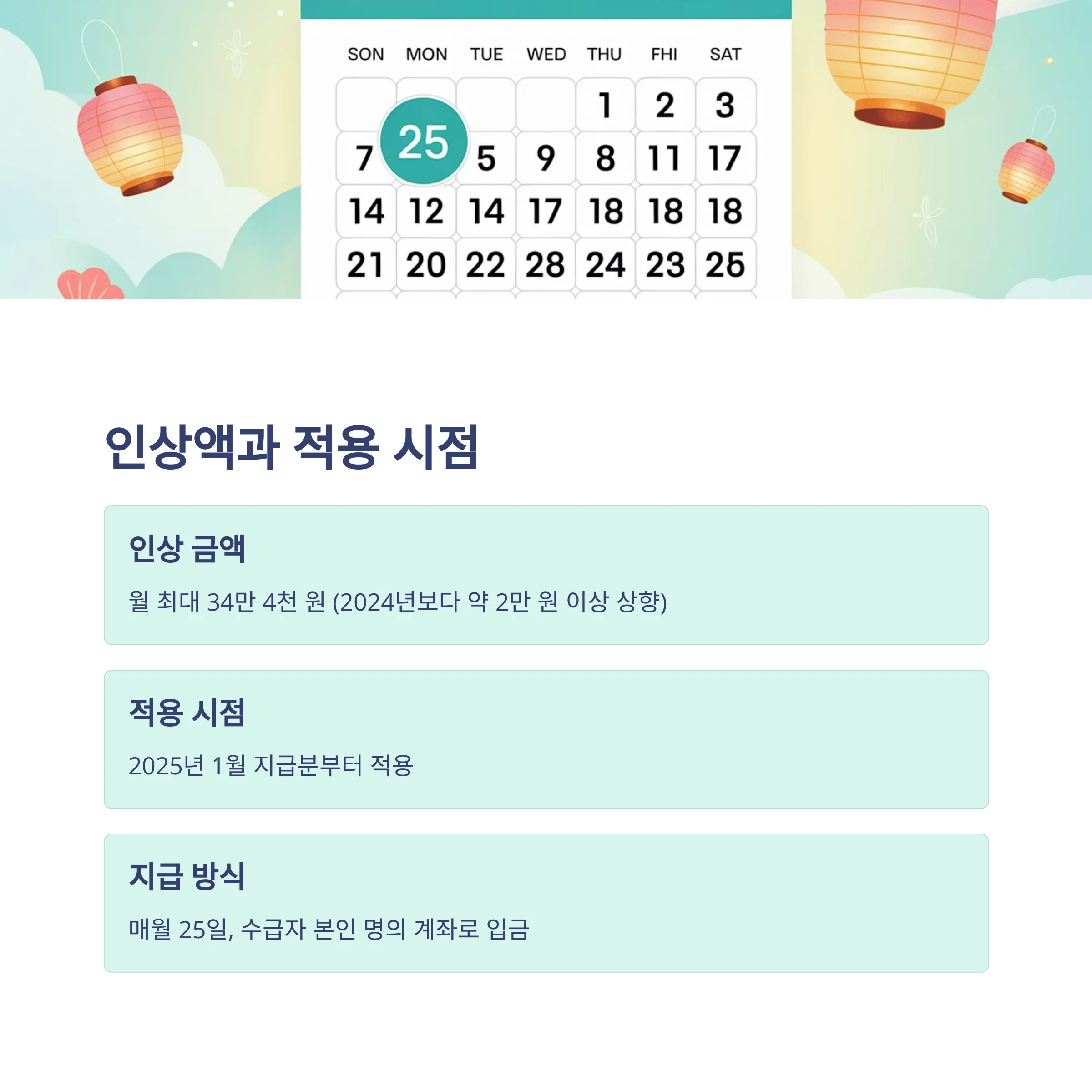 이 금액은 2025년 1월 지급분부터 적용되어 매월 25일,