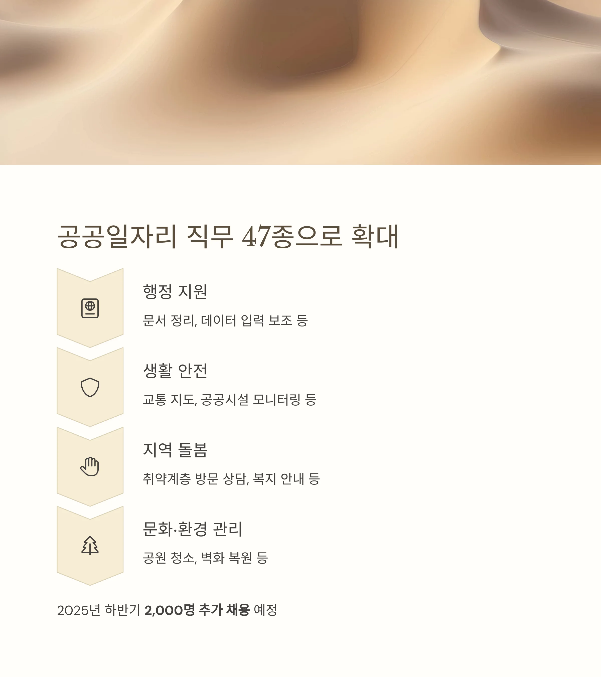 2025년 하반기에는 공공일자리가 2,000명 추가 채용되며, 직무도 47종으로 확대됩니다.