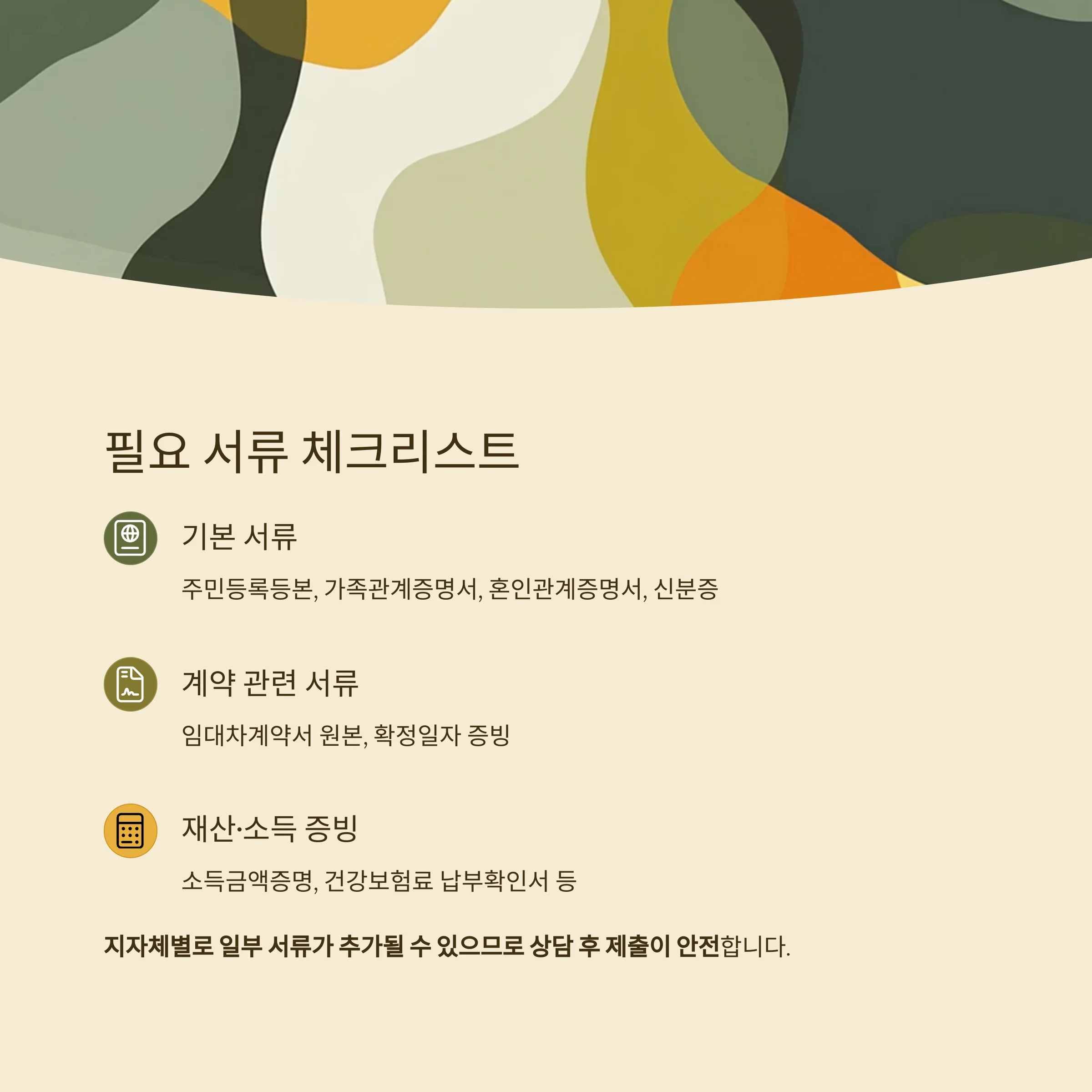 지자체별로 일부 서류가 추가될 수 있으므로 상담 후 제출이 안전합니다.