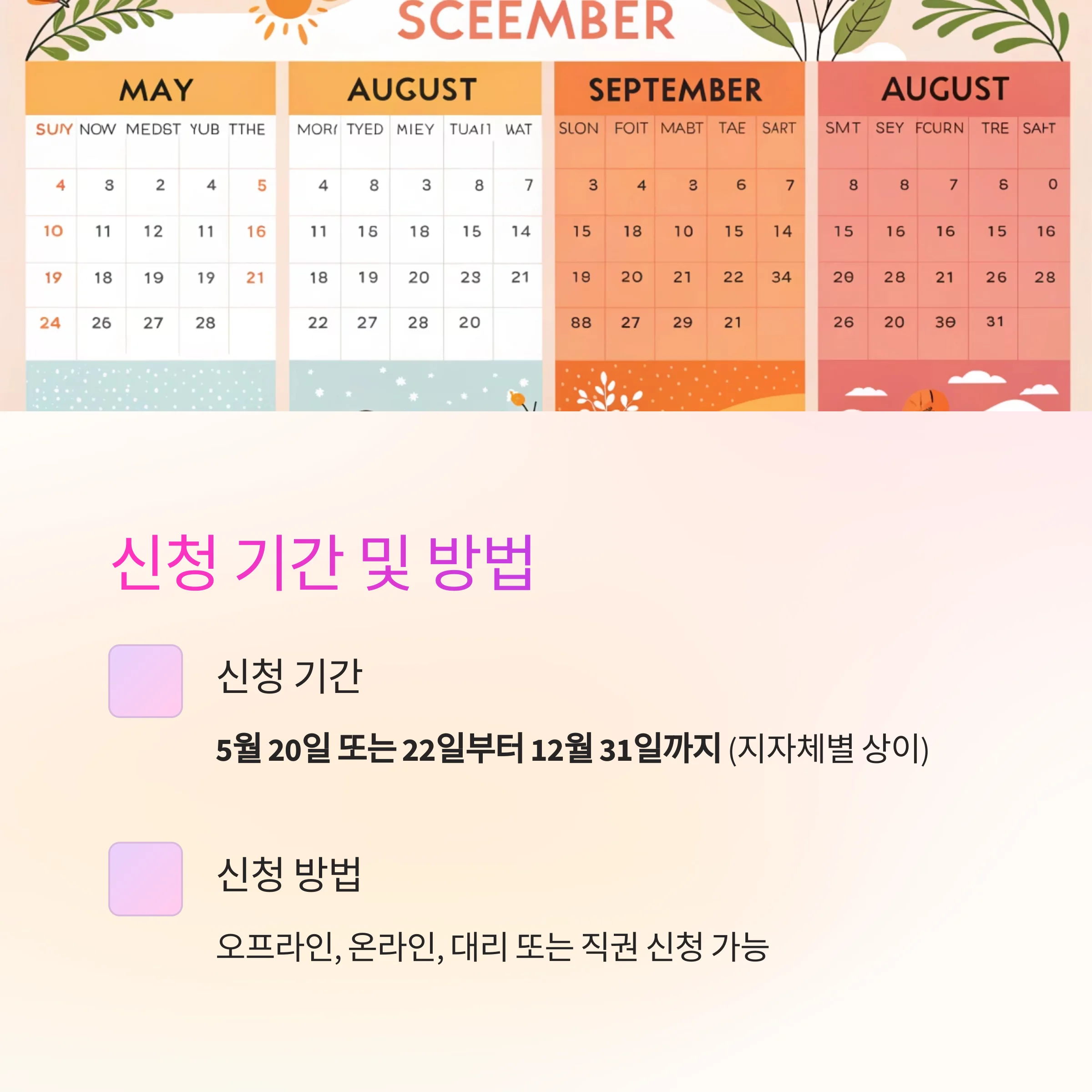 정확한 신청 기간과 방법을 숙지하지 않으면 지원을 놓칠 수 있습니다.