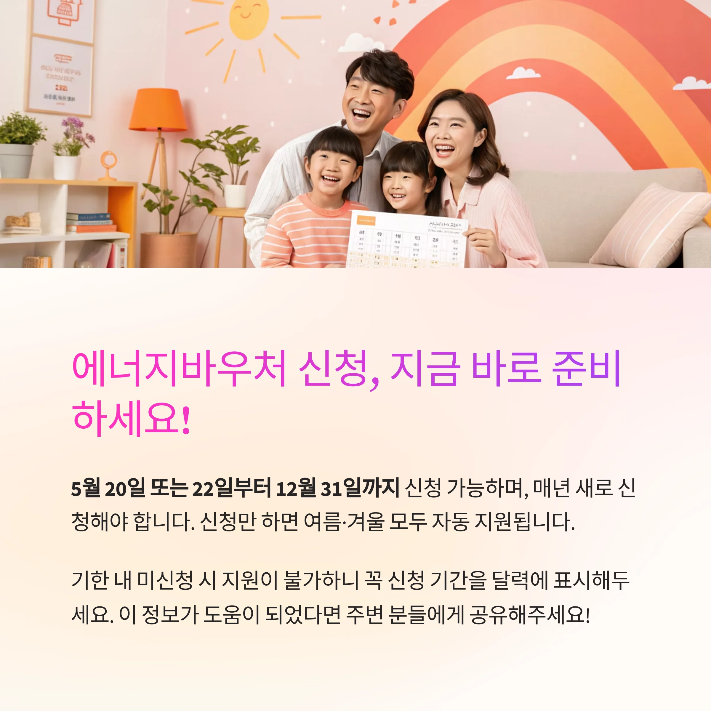 신청만 하면 여름·겨울 모두 자동 지원되므로, 가능한 빠른 신청이 권장됩니다.
