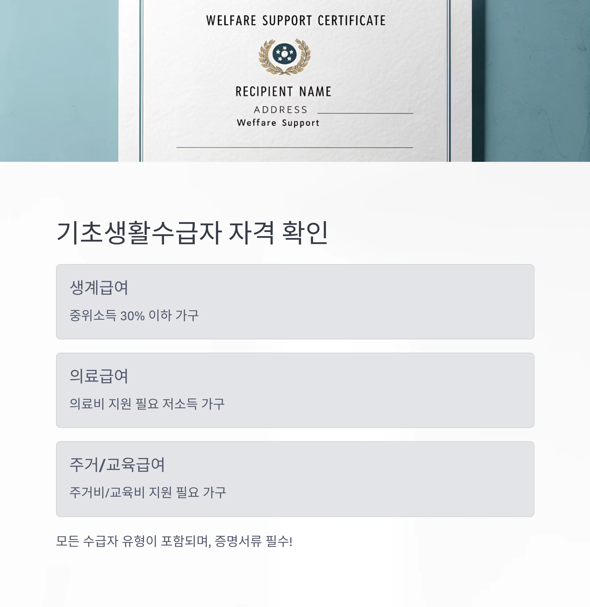 기초생활수급 확인, 특성기준 해당 여부, 서류 준비 3가지를 체크한 후