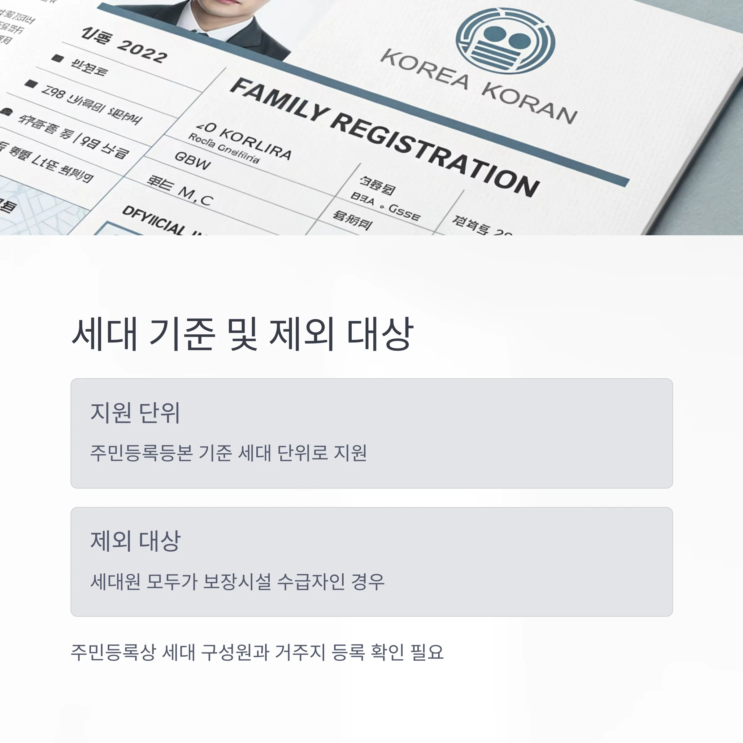 세대원 모두가 보장시설 수급자일 경우에는 지원 대상에서 제외됩니다.