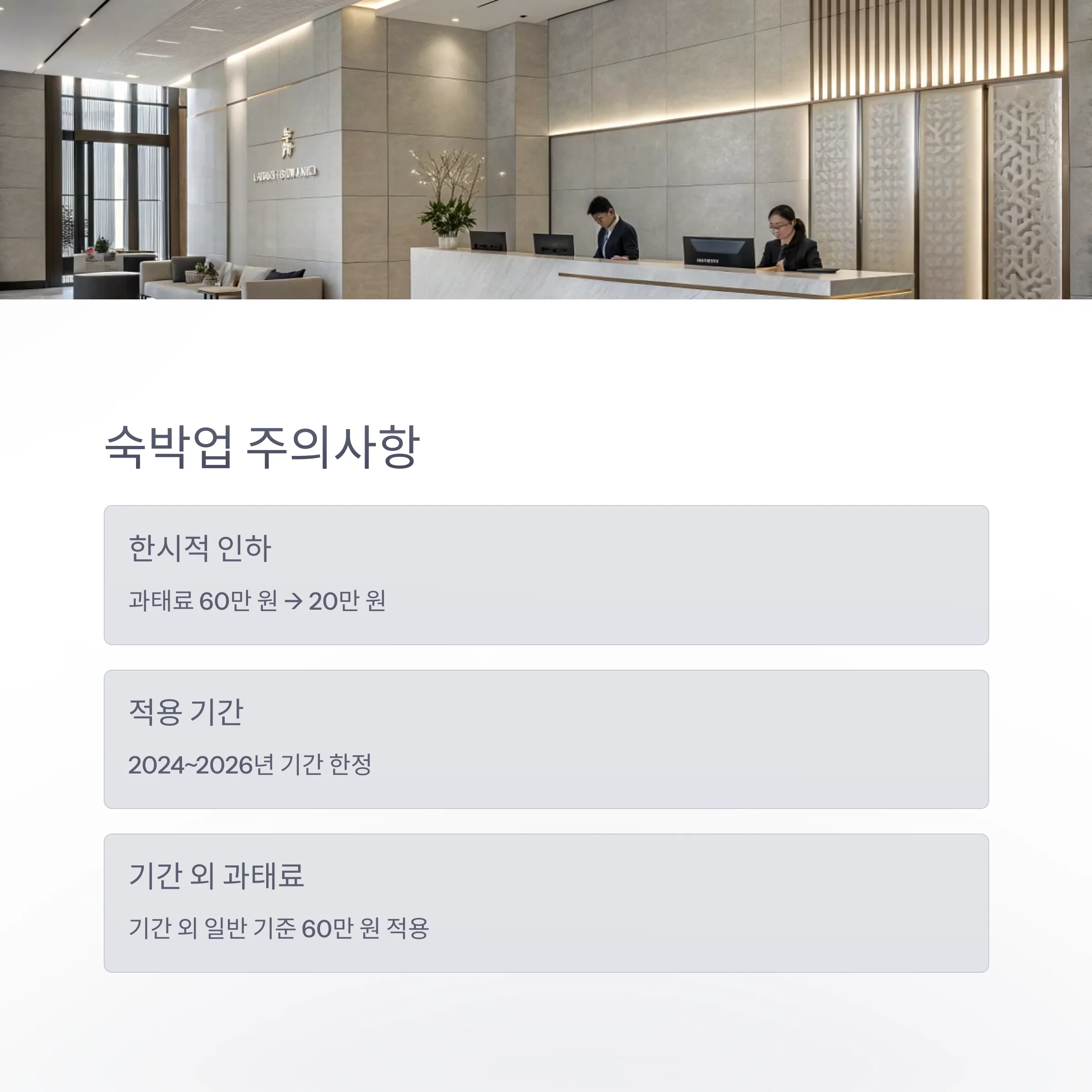 2025년부터 숙박업은 한시적으로 과태료가 20만 원으로 인하되지만,