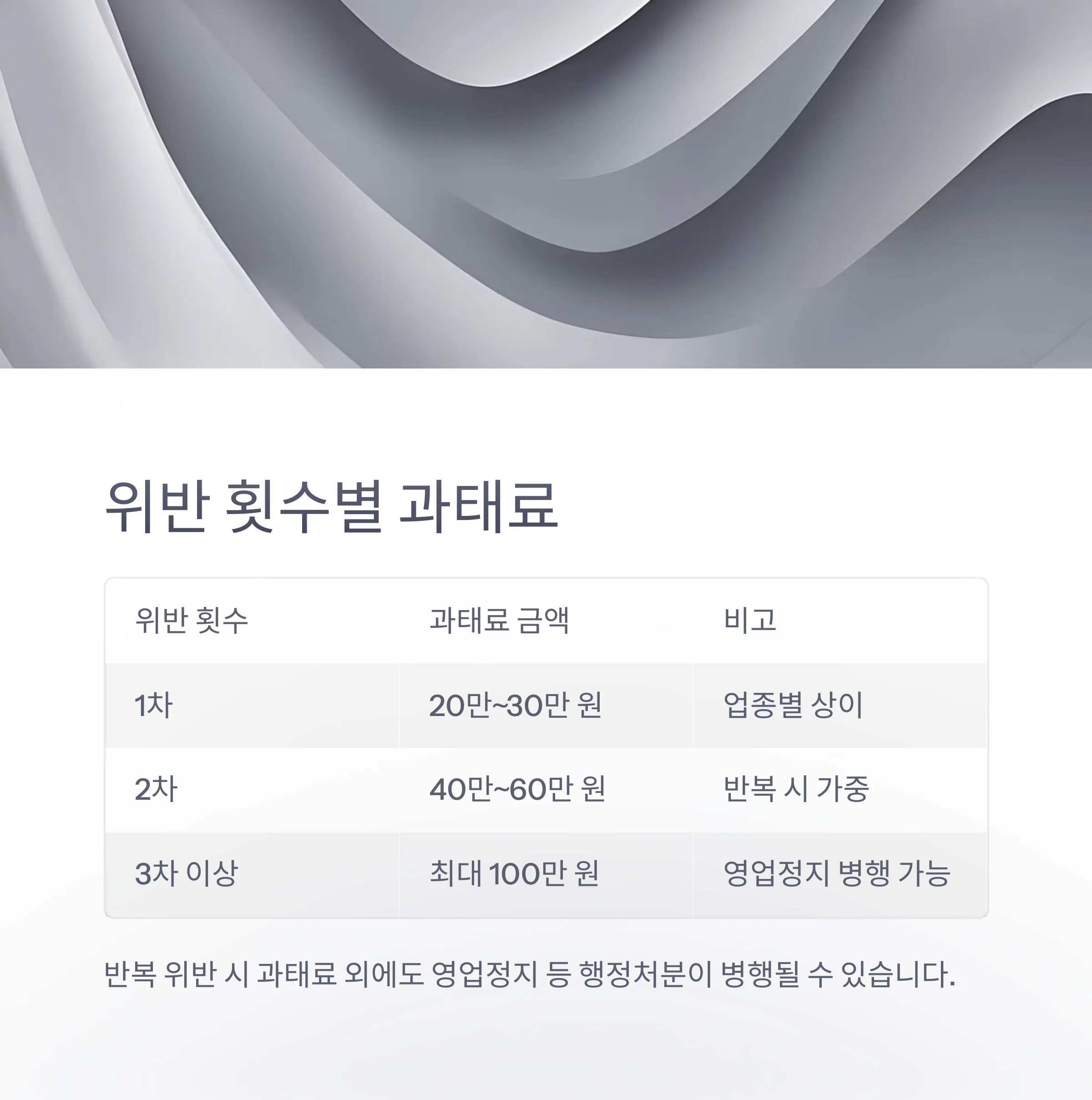 | 3차 이상 | 최대 100만 원 | 영업정지 병행 가능 |