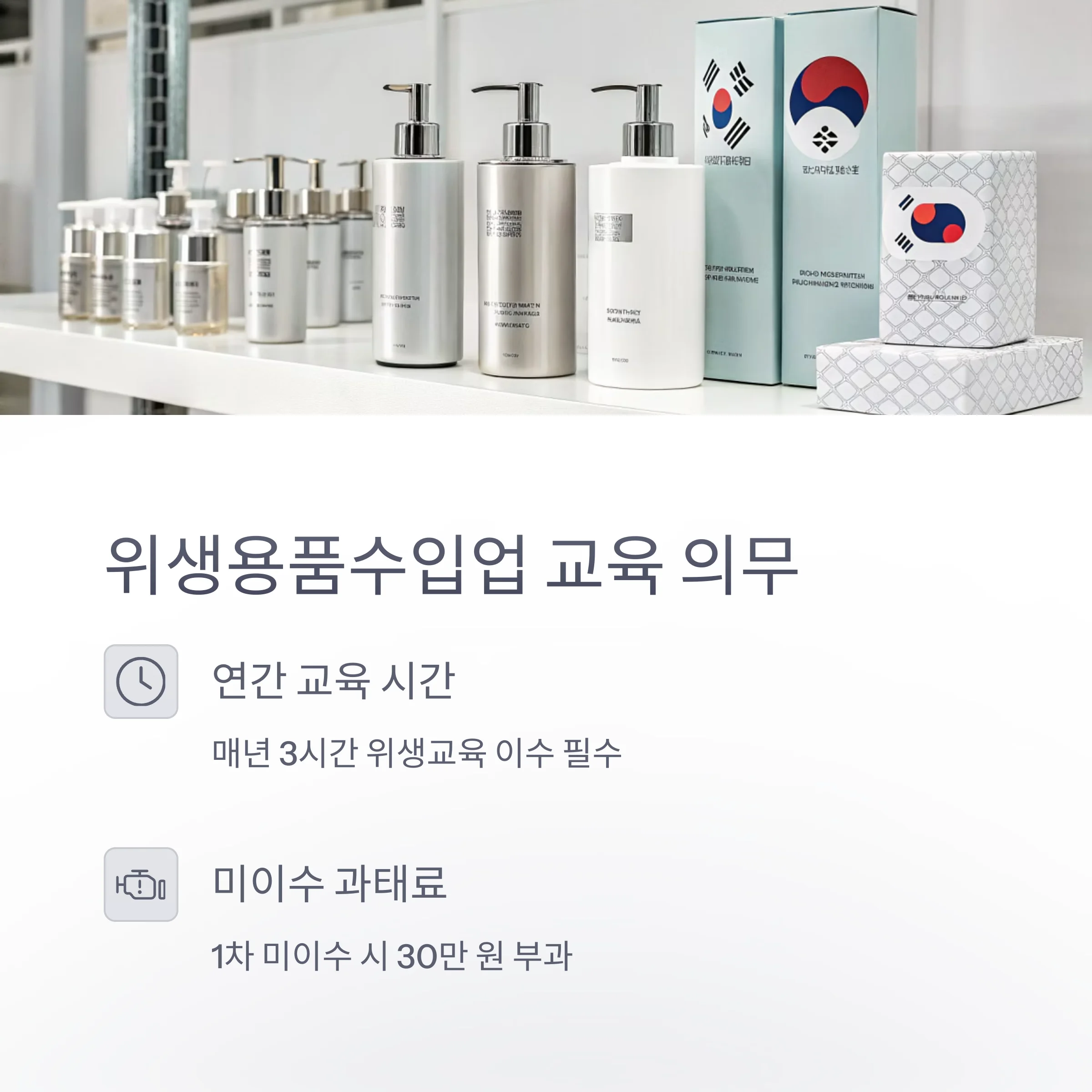 위생용품수입업자는 매년 3시간 위생교육 이수 의무가 있으며, 미이수 시 과태료가 부과됩니다.