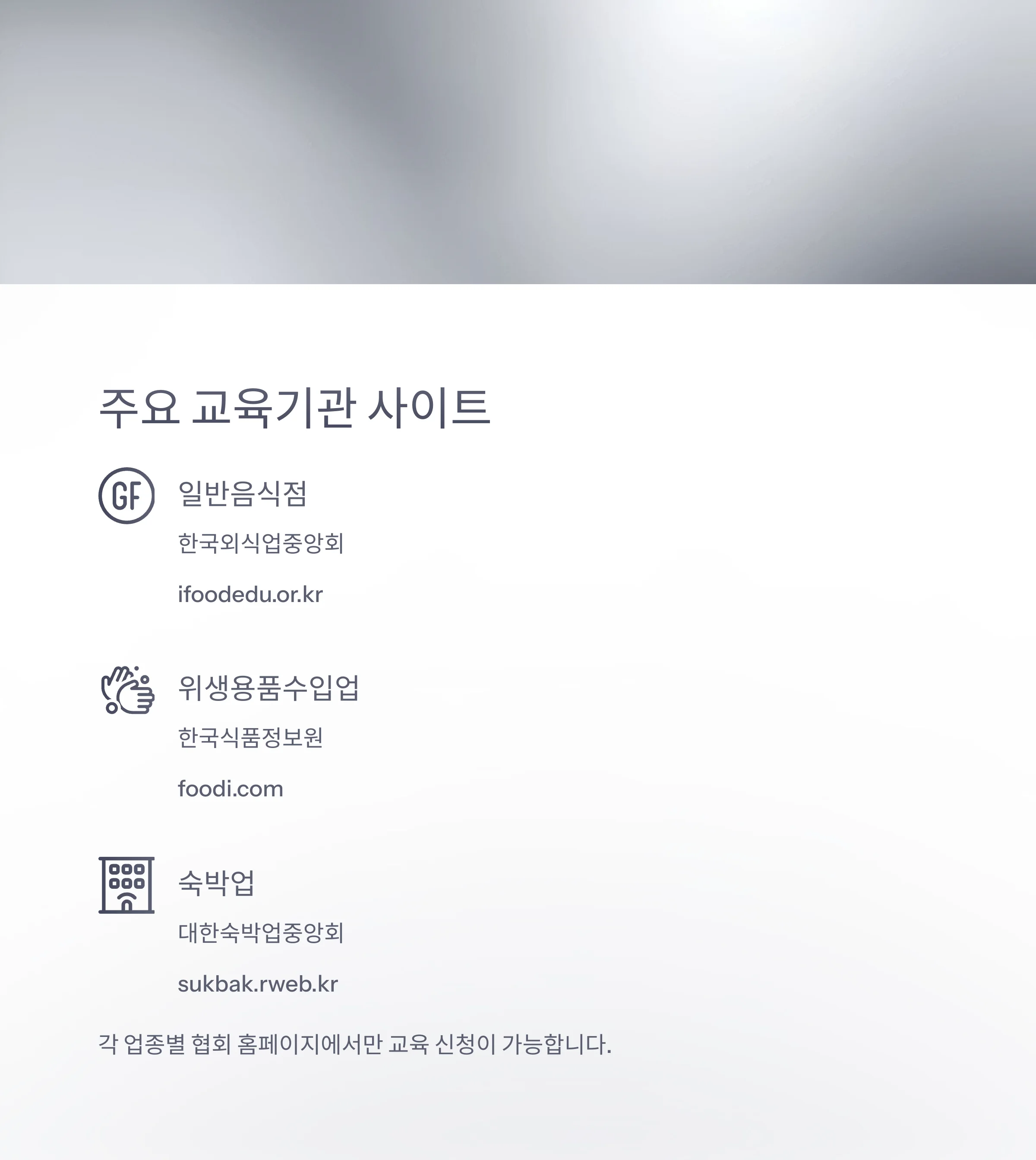 각 업종별 협회 또는 기관 홈페이지에서만 교육 신청이 가능하므로