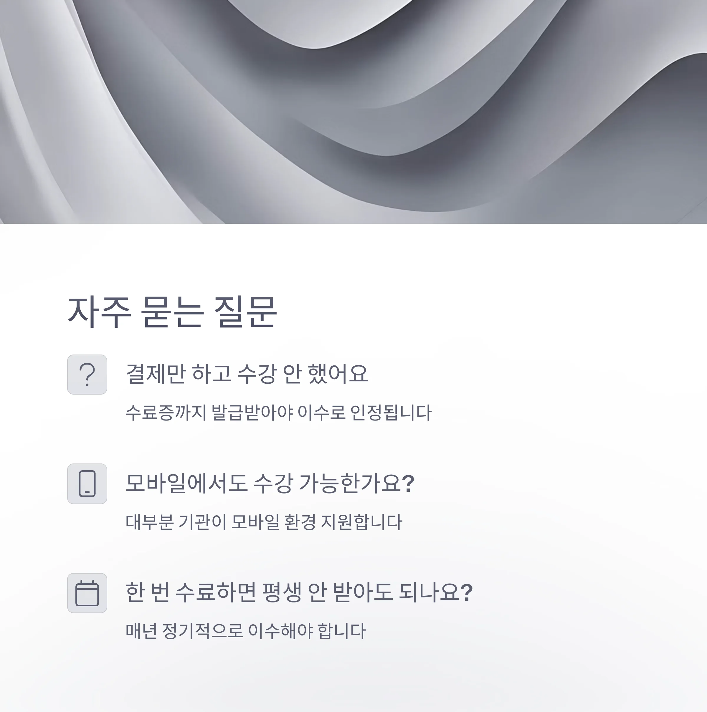 Q. 한 번 수료하면 평생 안 받아도 되나요?