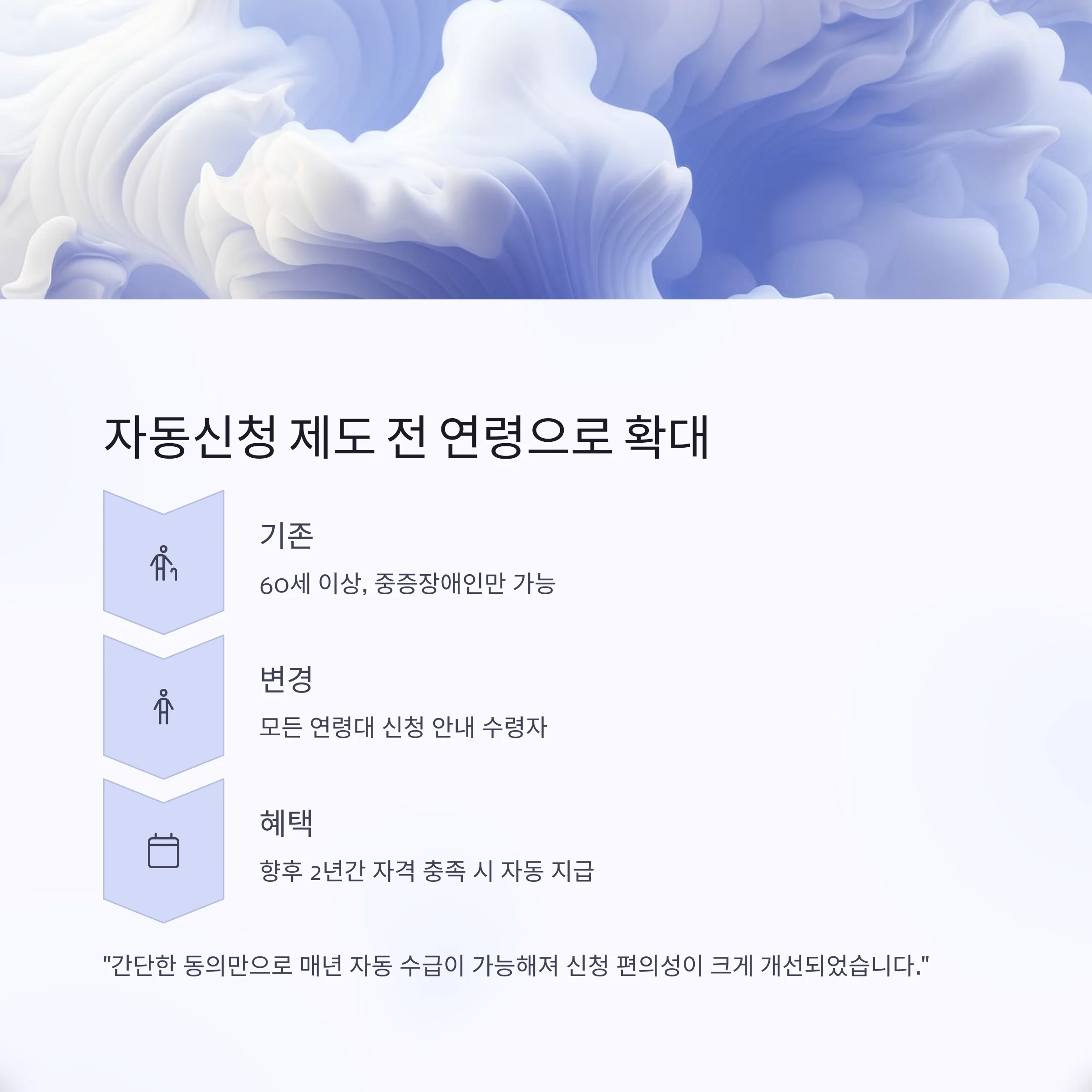 "간단한 동의만으로 매년 자동 수급이 가능해져 신청 편의성이 크게 개선되었습니다."