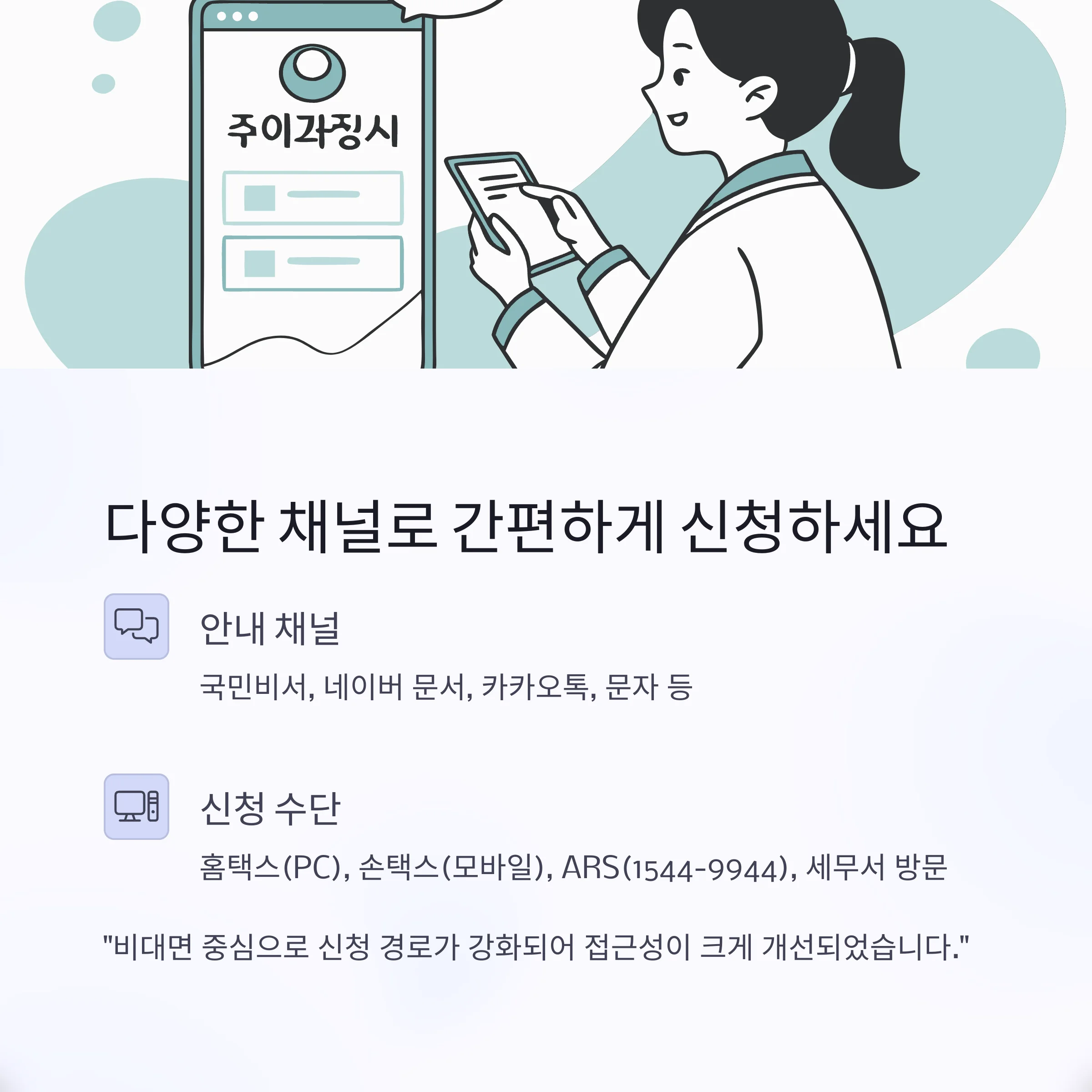 | 신청 채널 | 홈택스·세무서 위주 | 모바일·ARS·국민비서까지 확대 |