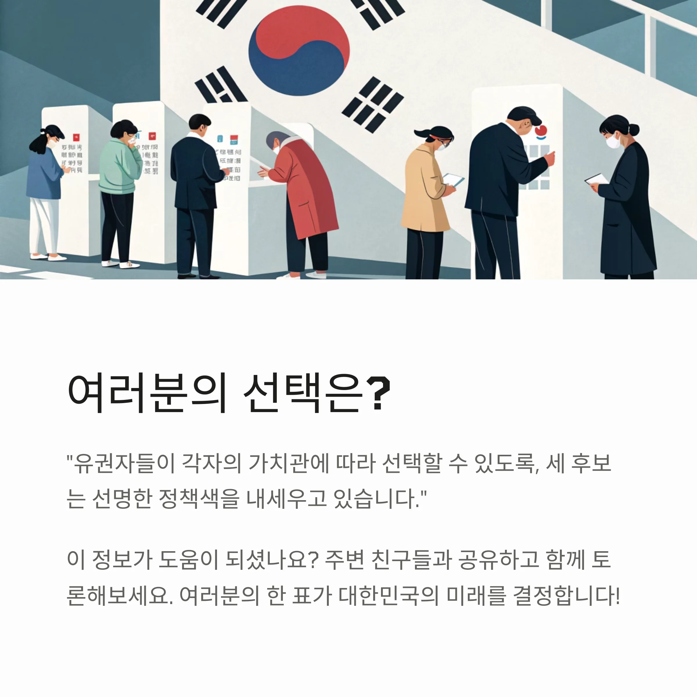 2025년 6월 3일 제21대 대통령선거를 앞두고, 주요 후보 3인의 핵심 공약이 확정되었습니다.