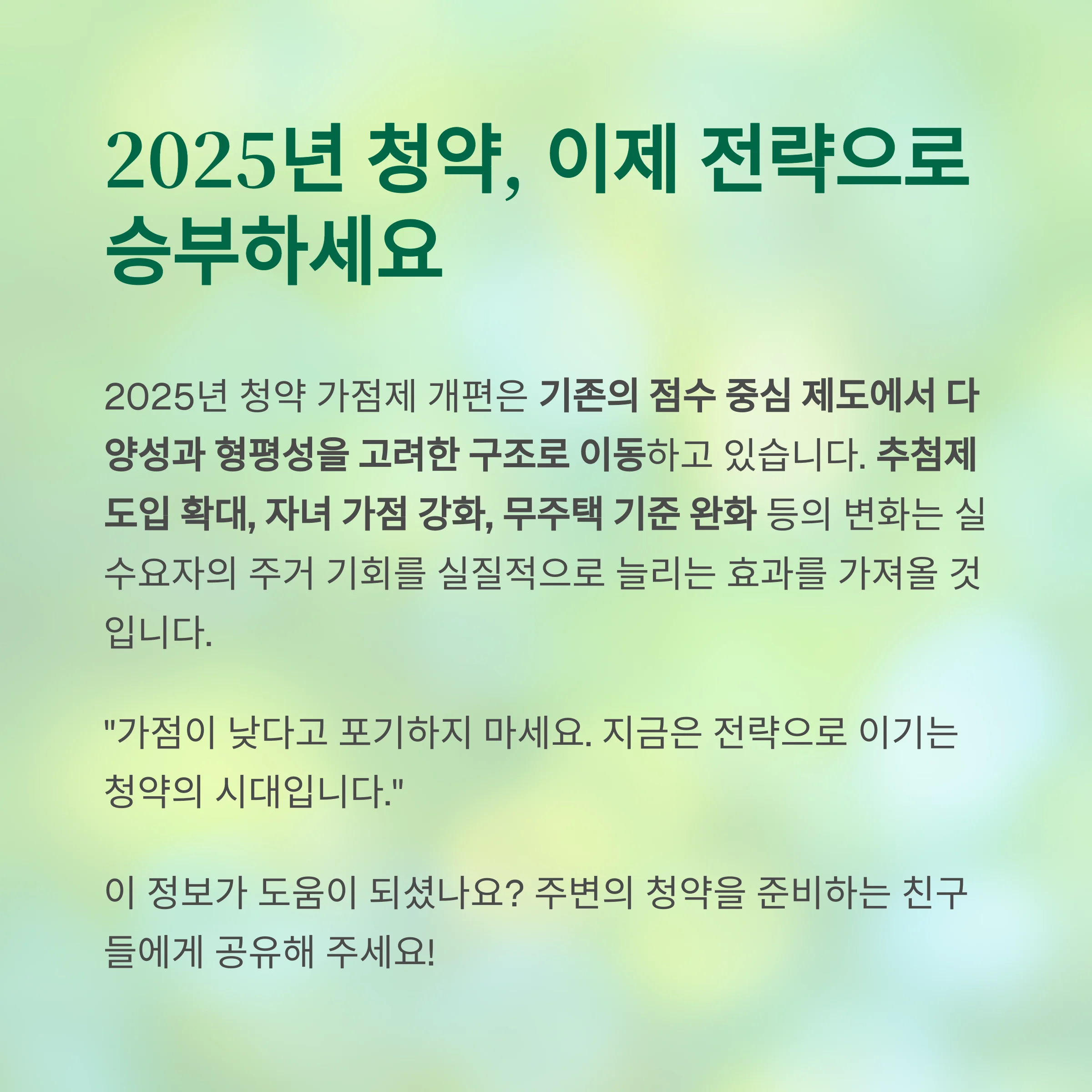 "가점이 낮다고 포기하지 마세요. 지금은 전략으로 이기는 청약의 시대입니다."