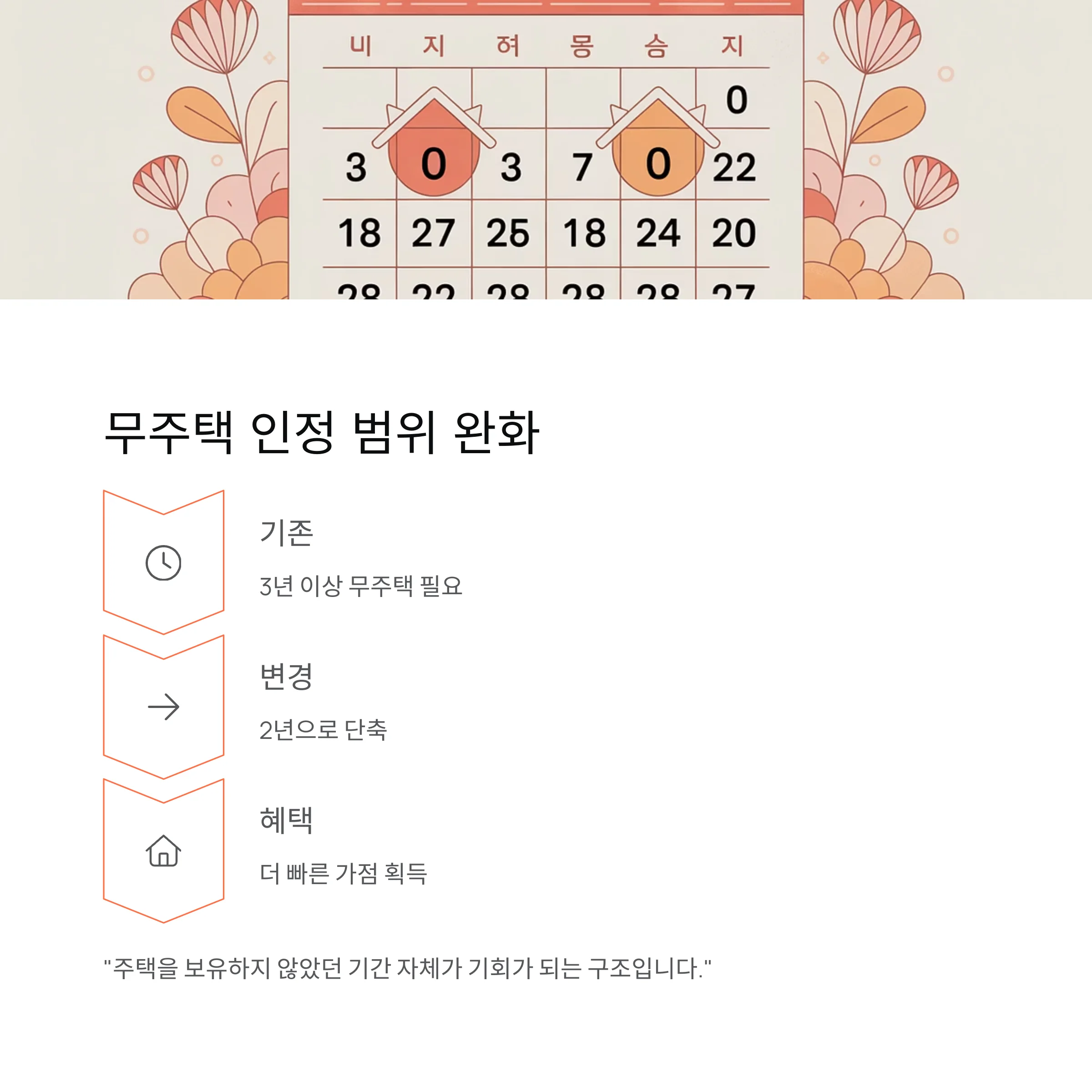 "주택을 보유하지 않았던 기간 자체가 기회가 되는 구조입니다."